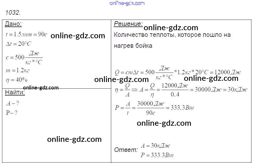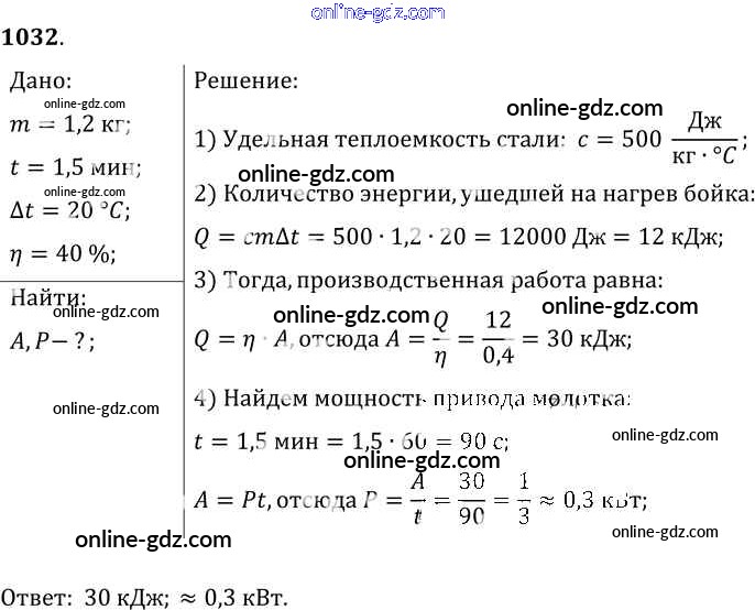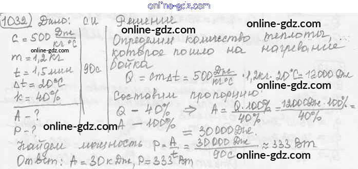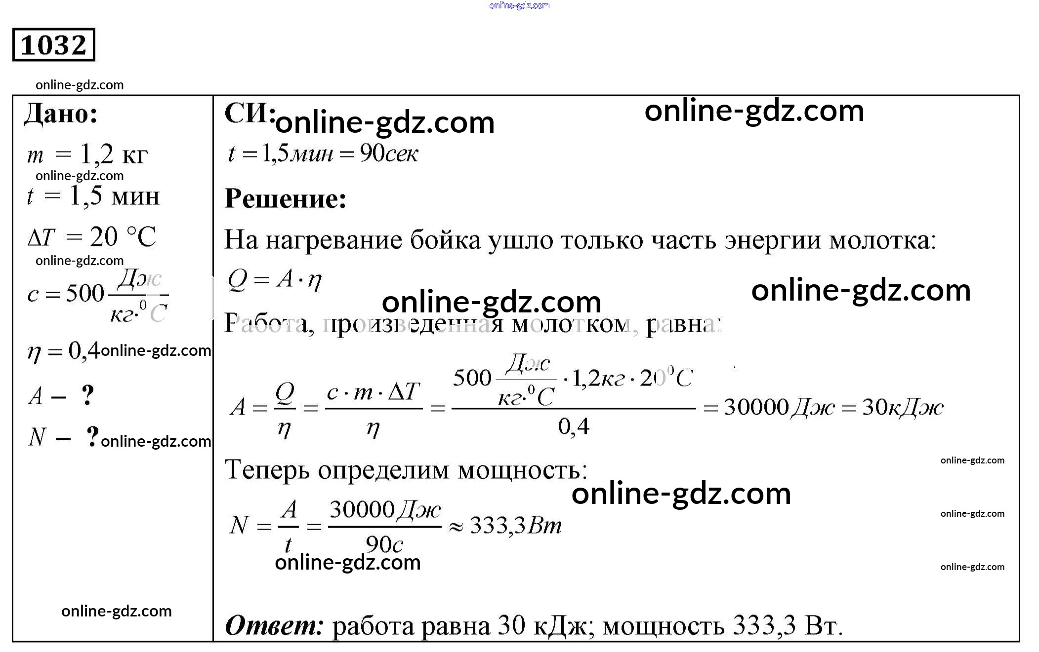 Готовые домашние задания по Физике за 7, 8, 9 класс Сборник задач Лукашик, Иванова 2011 - Задания 1032