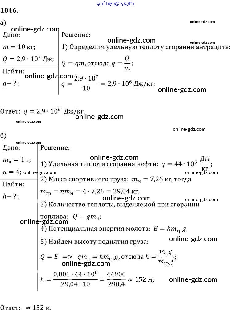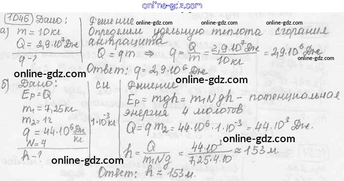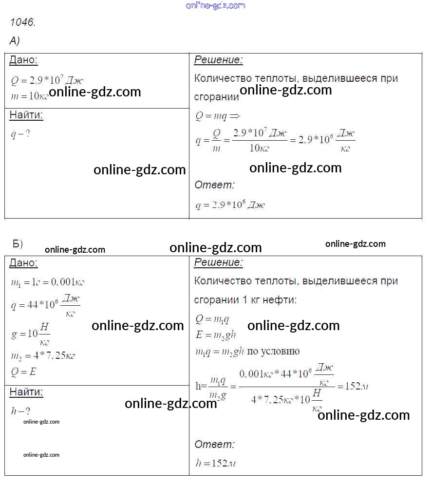 Готовые домашние задания по Физике за 7, 8, 9 класс Сборник задач Лукашик, Иванова 2011 - Задания 1046