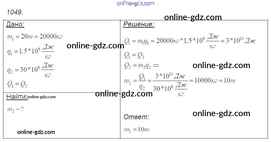 Готовые домашние задания по Физике за 7, 8, 9 класс Сборник задач Лукашик, Иванова 2011 - Задания 1049