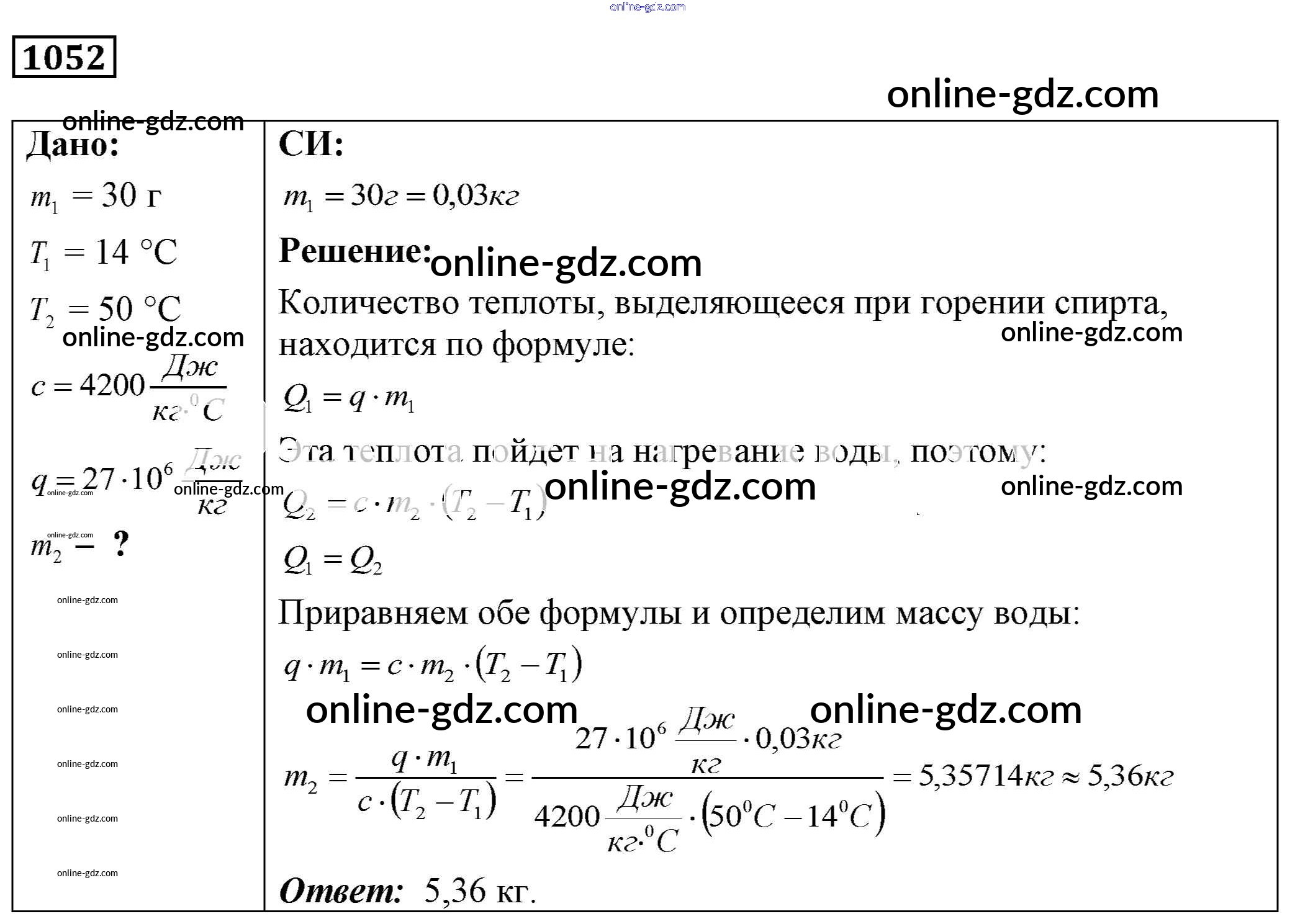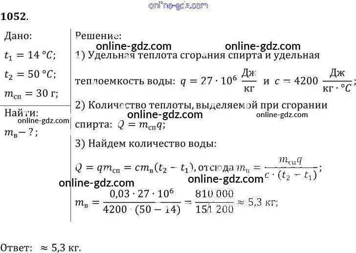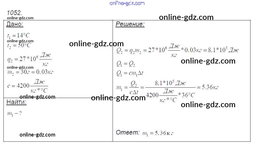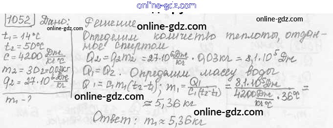 Готовые домашние задания по Физике за 7, 8, 9 класс Сборник задач Лукашик, Иванова 2011 - Задания 1052