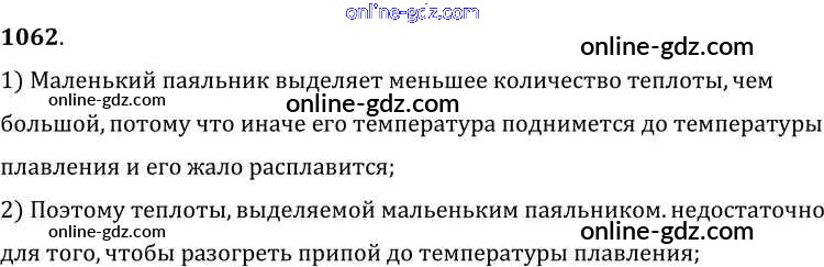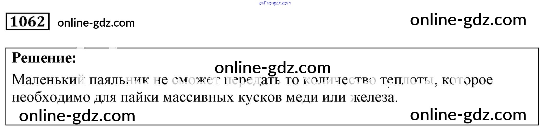 Готовые домашние задания по Физике за 7, 8, 9 класс Сборник задач Лукашик, Иванова 2011 - Задания 1062