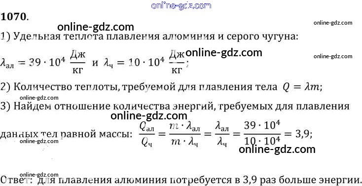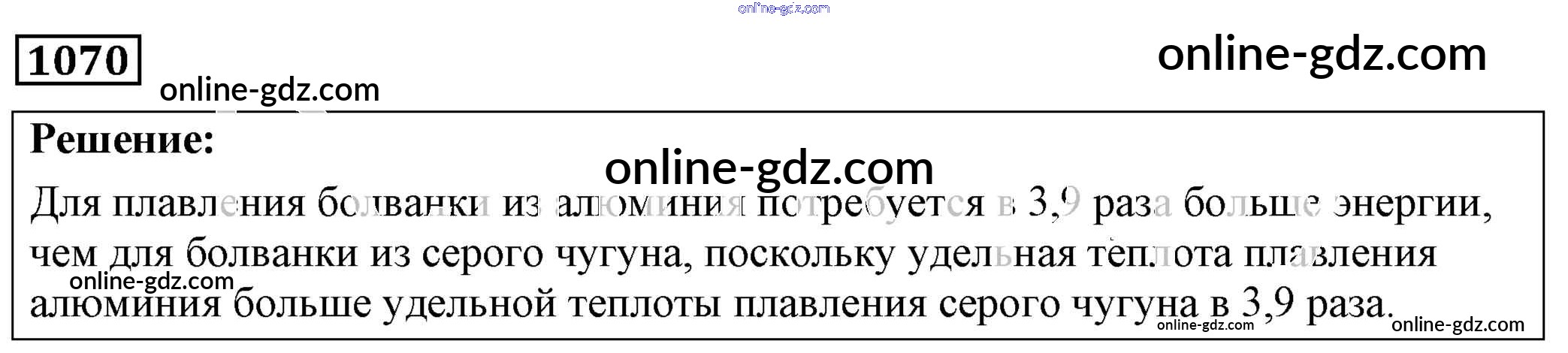 Готовые домашние задания по Физике за 7, 8, 9 класс Сборник задач Лукашик, Иванова 2011 - Задания 1070