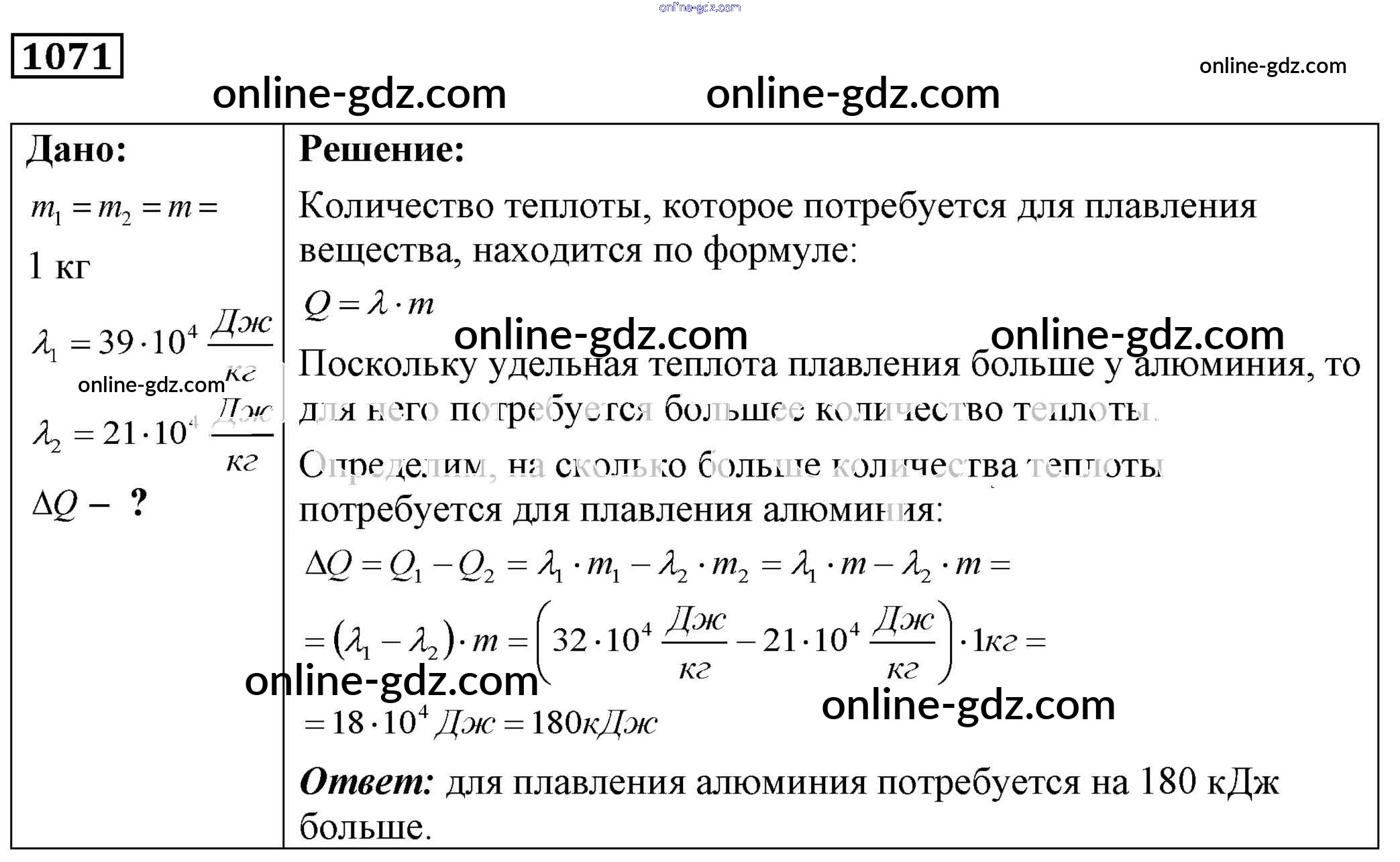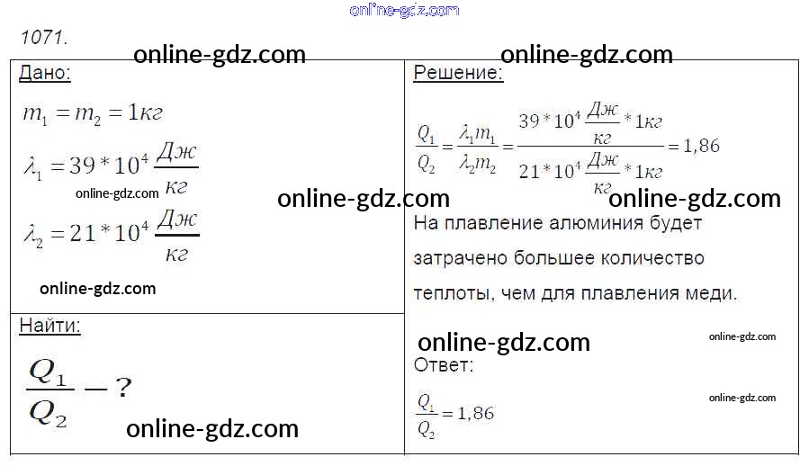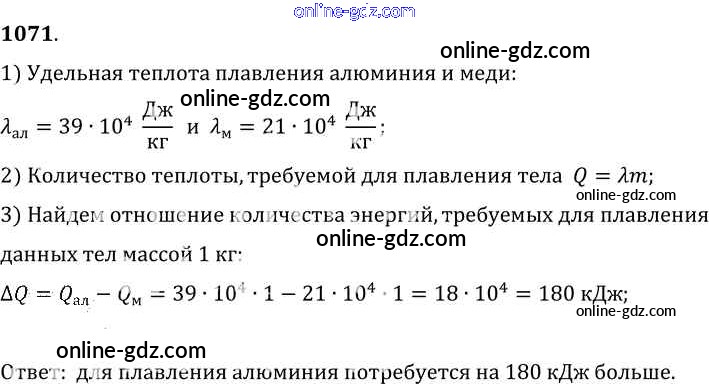 Готовые домашние задания по Физике за 7, 8, 9 класс Сборник задач Лукашик, Иванова 2011 - Задания 1071