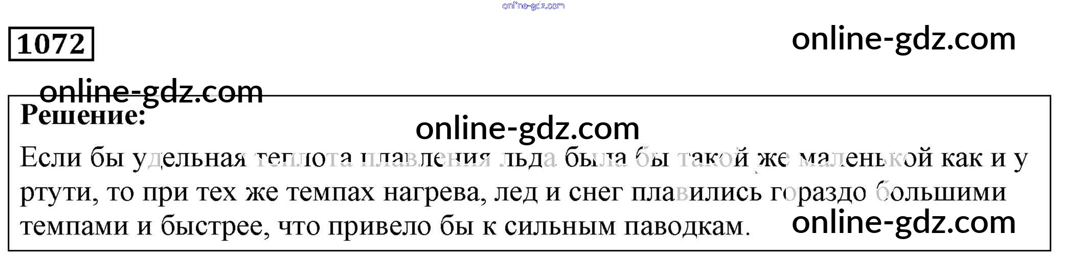 Готовые домашние задания по Физике за 7, 8, 9 класс Сборник задач Лукашик, Иванова 2011 - Задания 1072
