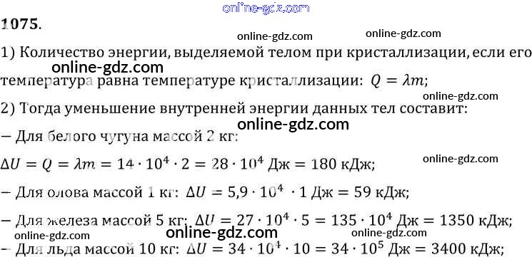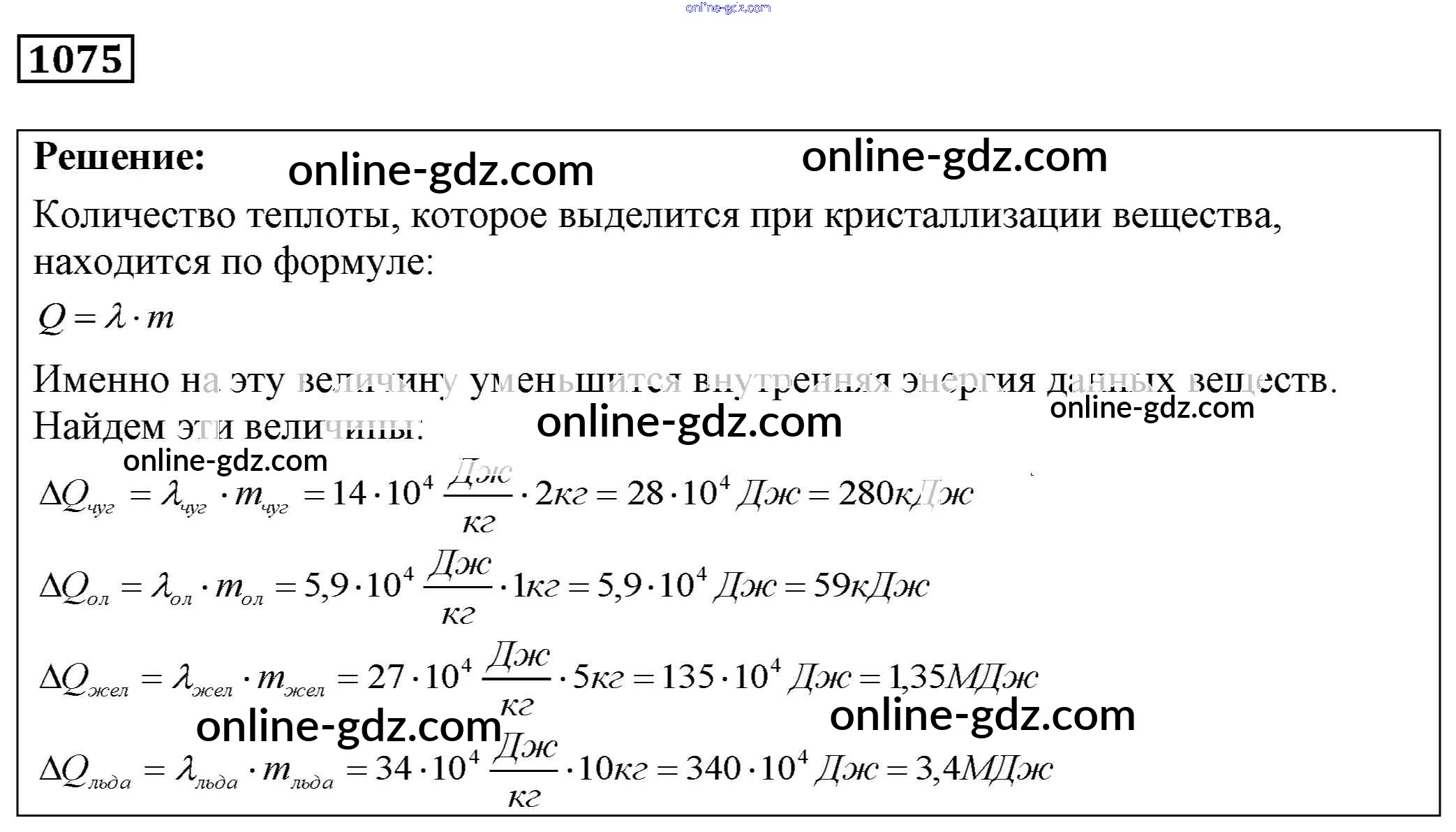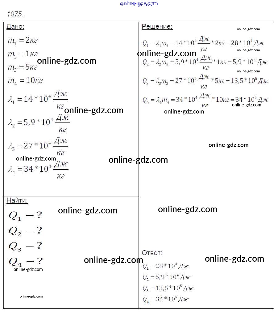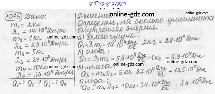 Готовые домашние задания по Физике за 7, 8, 9 класс Сборник задач Лукашик, Иванова 2011 - Задания 1075