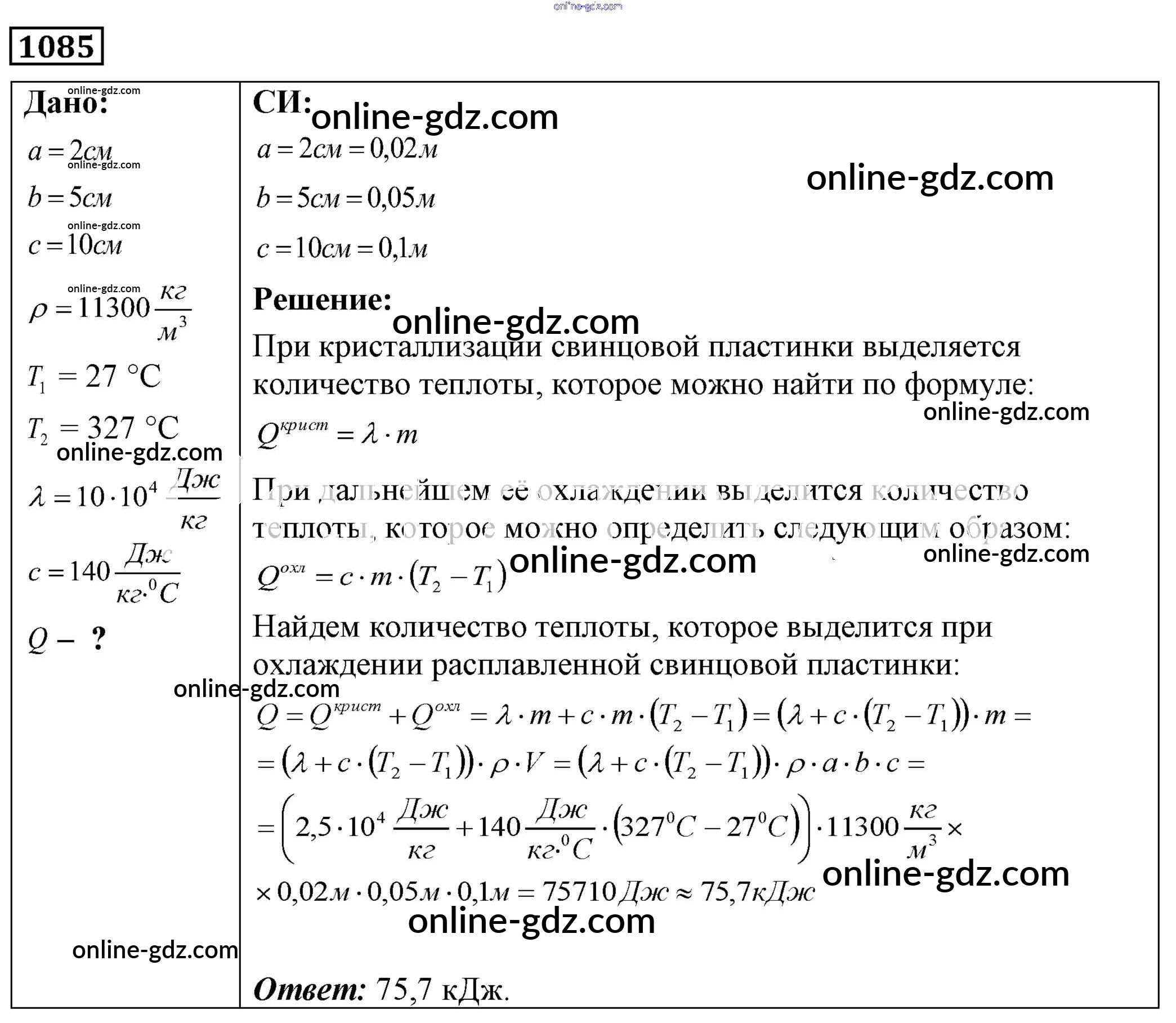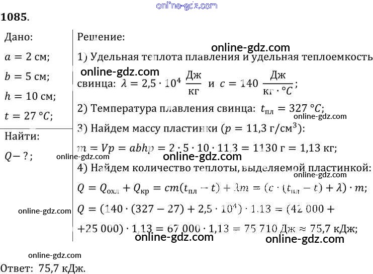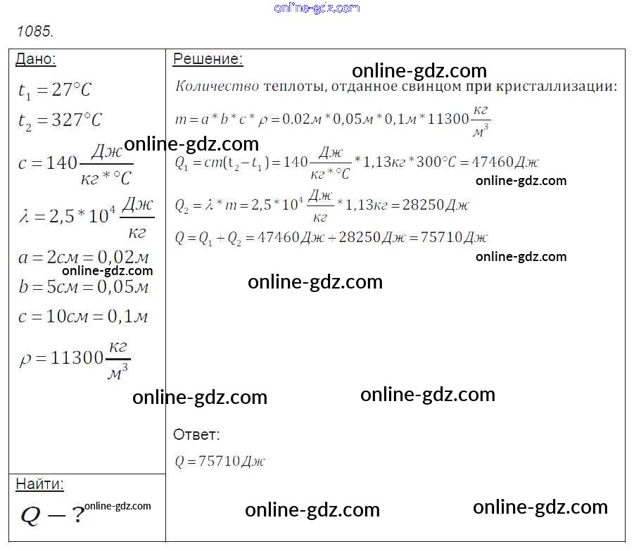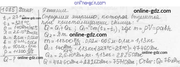 Готовые домашние задания по Физике за 7, 8, 9 класс Сборник задач Лукашик, Иванова 2011 - Задания 1085