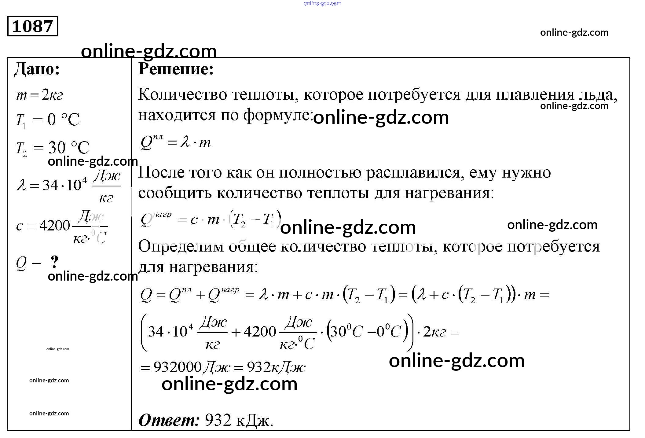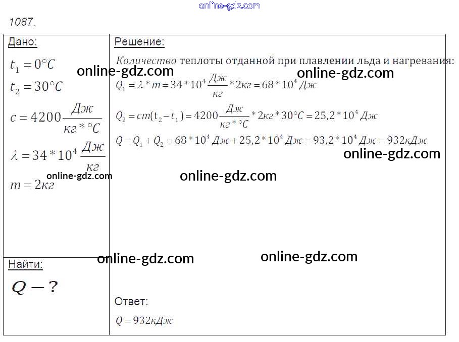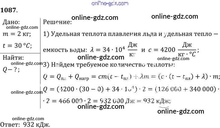 Готовые домашние задания по Физике за 7, 8, 9 класс Сборник задач Лукашик, Иванова 2011 - Задания 1087