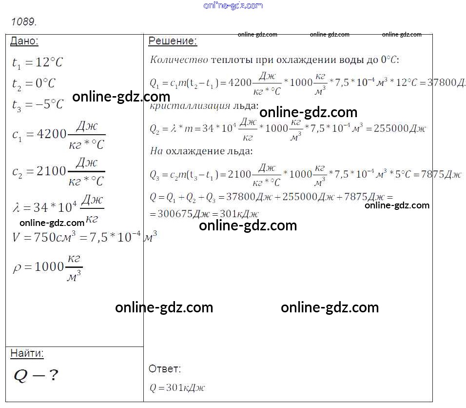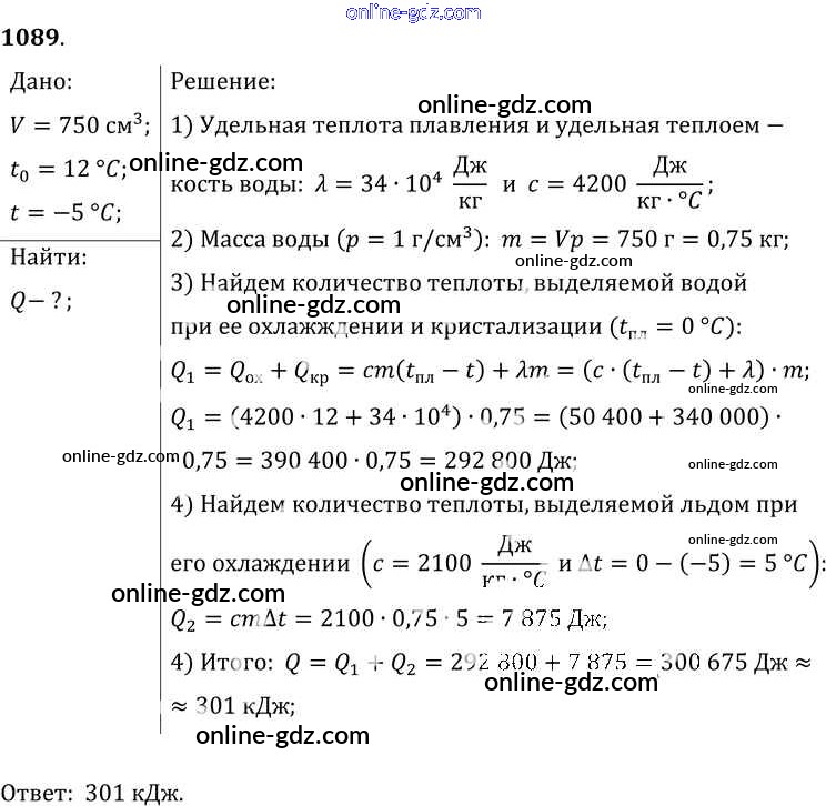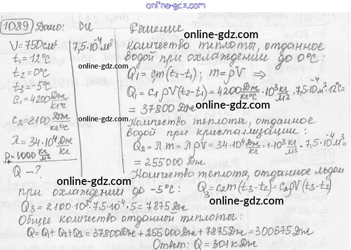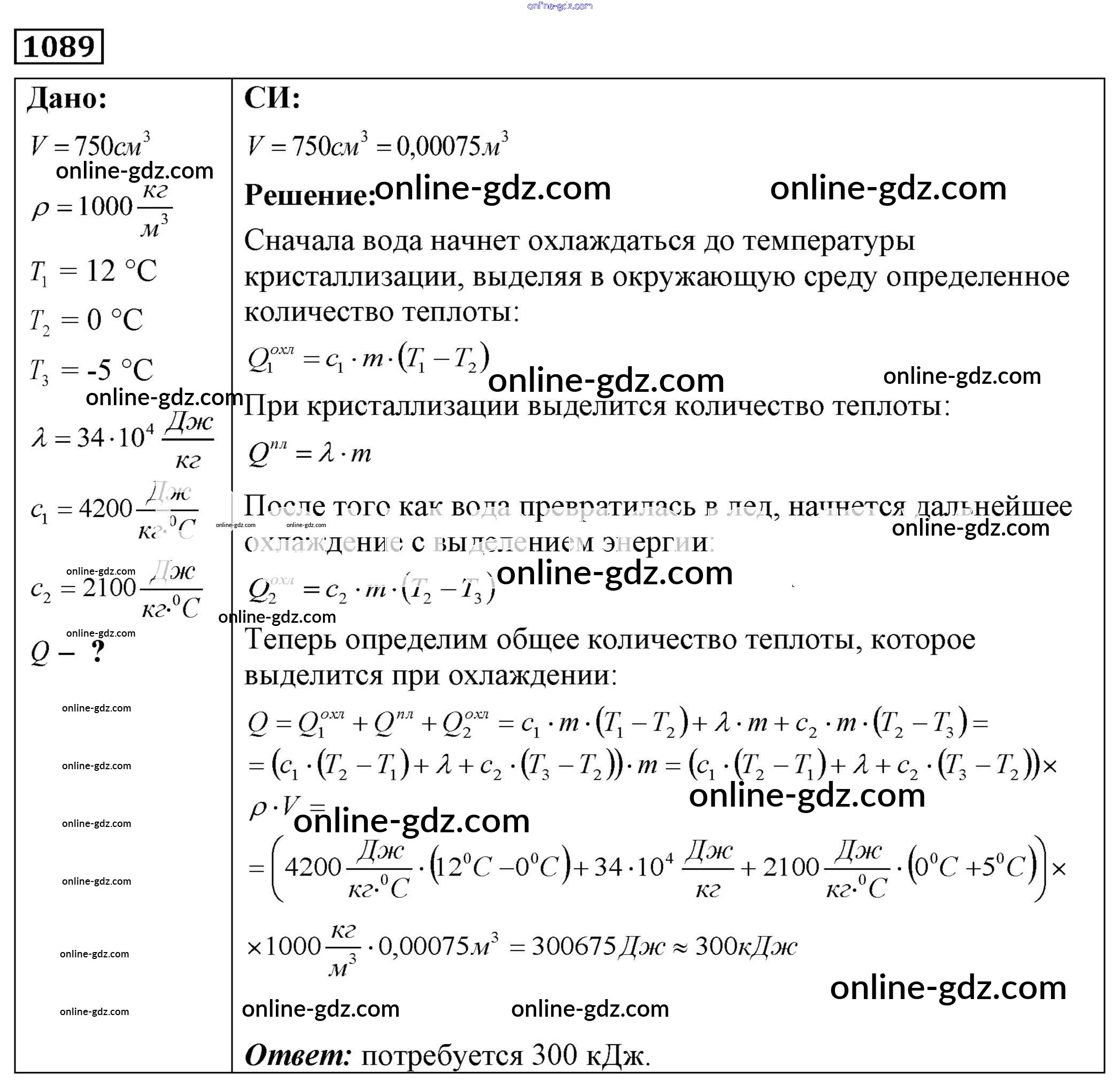 Готовые домашние задания по Физике за 7, 8, 9 класс Сборник задач Лукашик, Иванова 2011 - Задания 1089