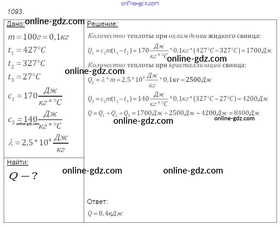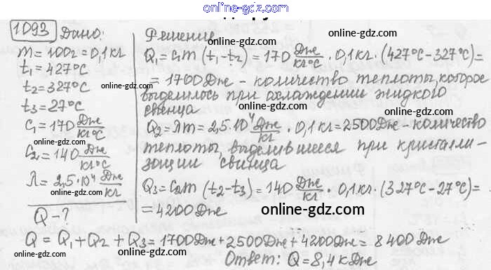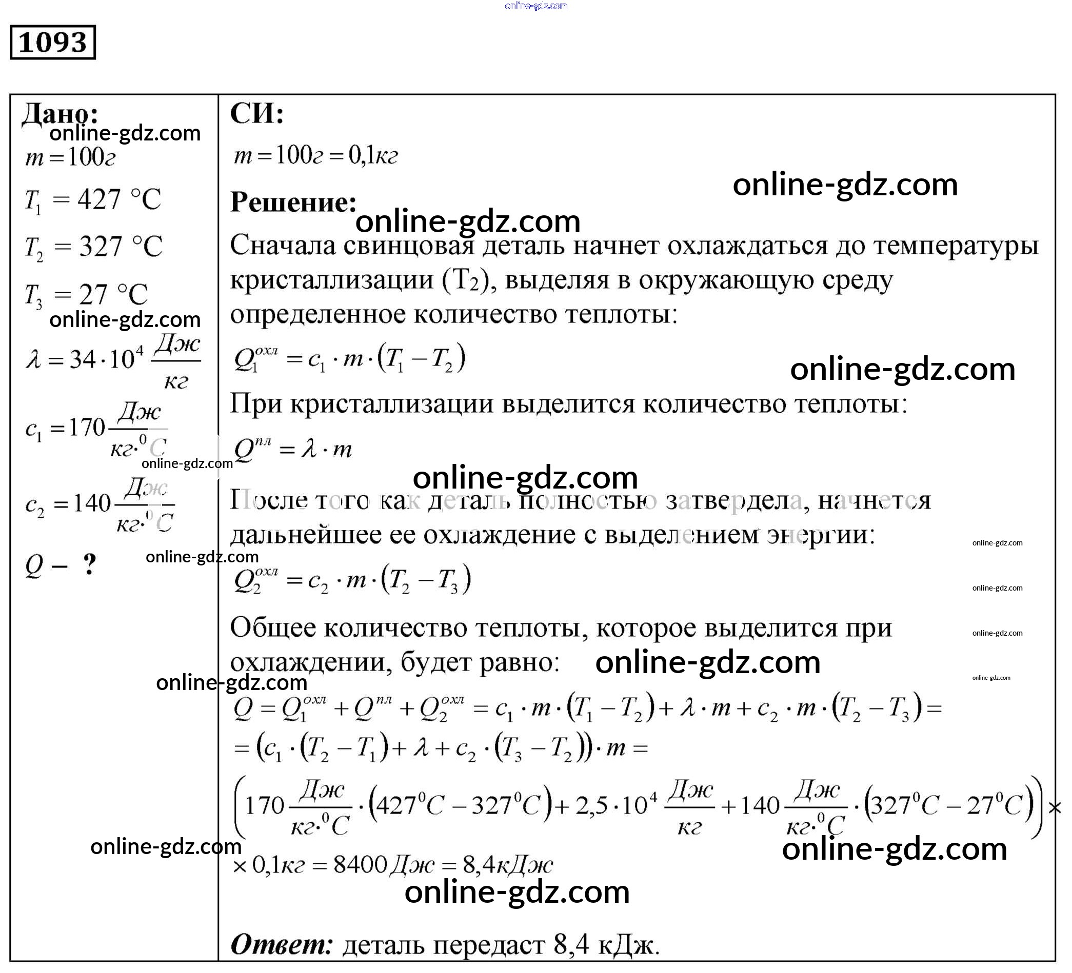 Готовые домашние задания по Физике за 7, 8, 9 класс Сборник задач Лукашик, Иванова 2011 - Задания 1093