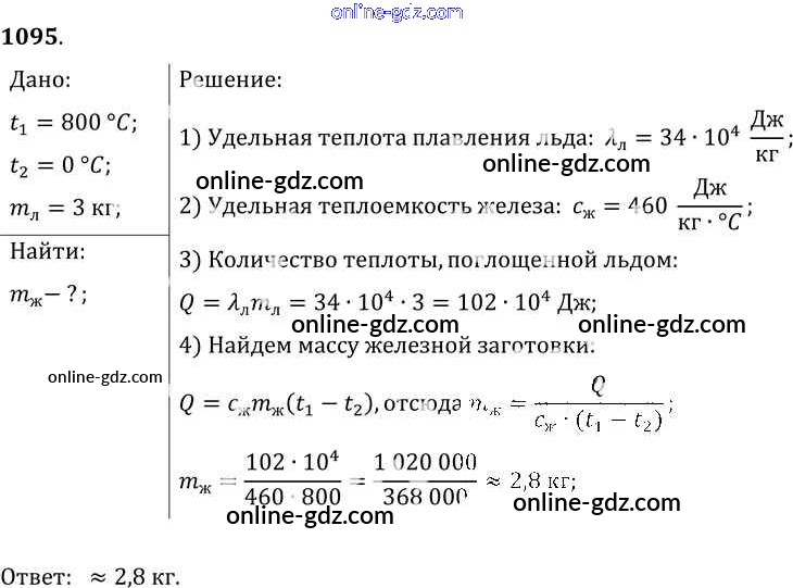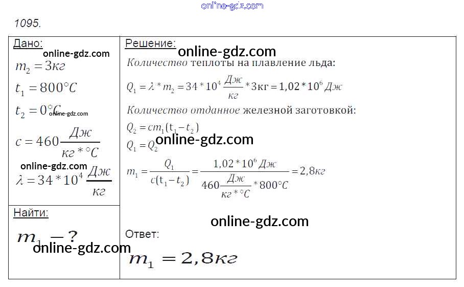 Готовые домашние задания по Физике за 7, 8, 9 класс Сборник задач Лукашик, Иванова 2011 - Задания 1095