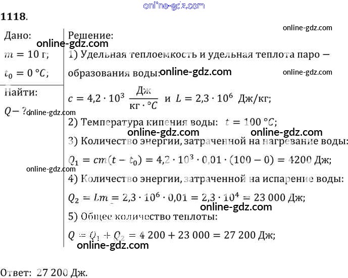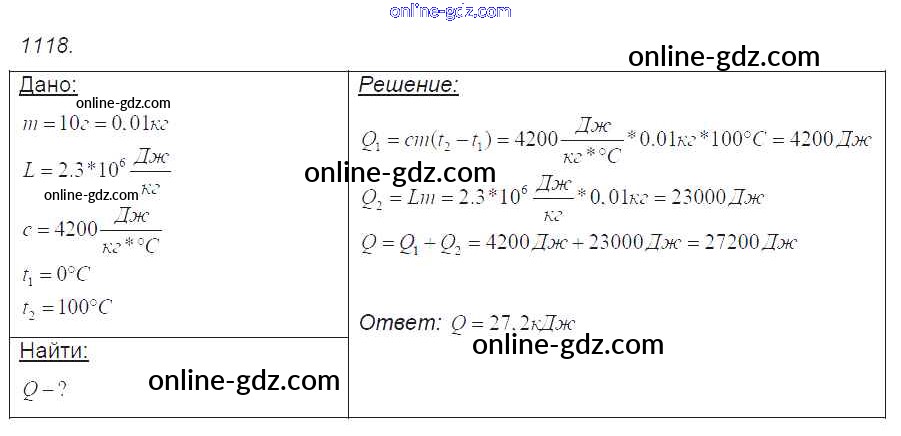 Готовые домашние задания по Физике за 7, 8, 9 класс Сборник задач Лукашик, Иванова 2011 - Задания 1118