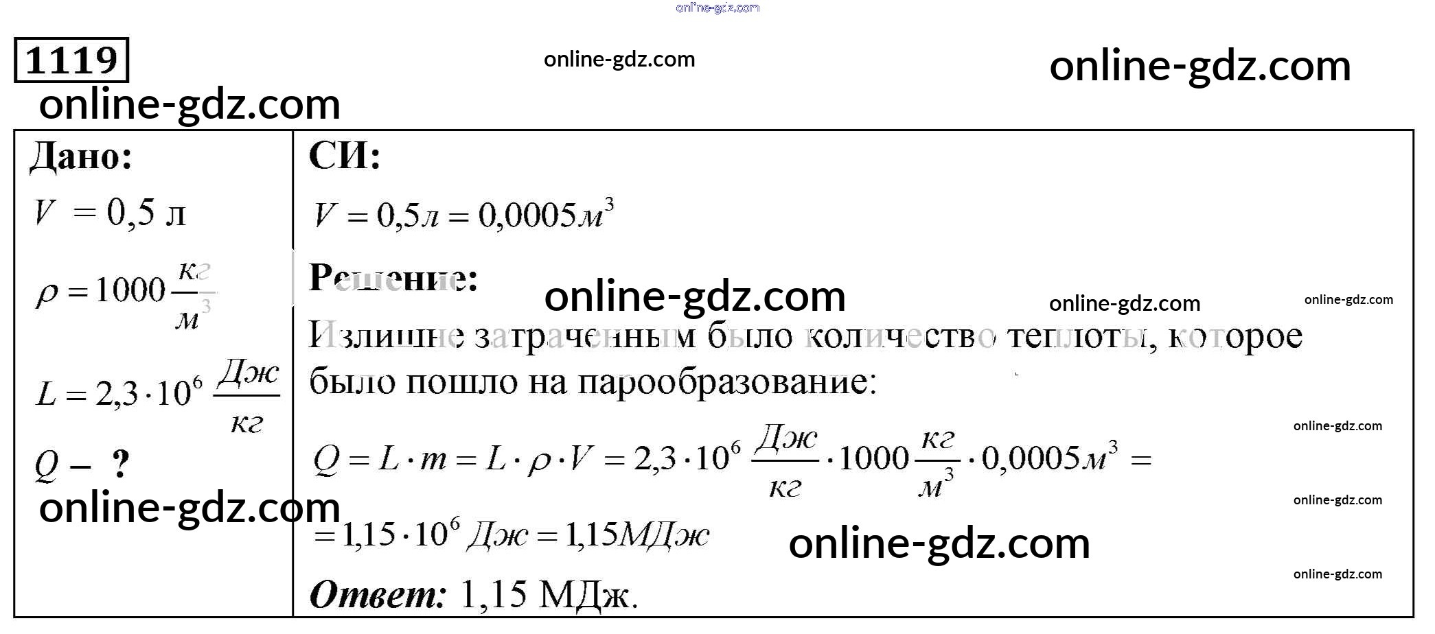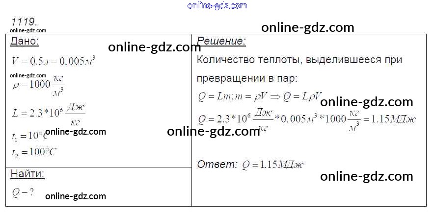 Готовые домашние задания по Физике за 7, 8, 9 класс Сборник задач Лукашик, Иванова 2011 - Задания 1119