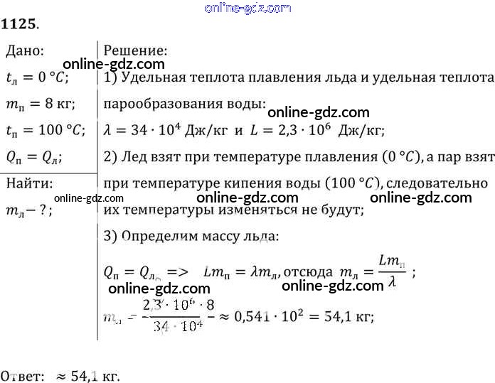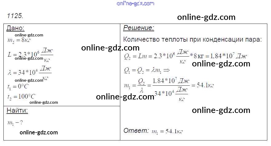 Готовые домашние задания по Физике за 7, 8, 9 класс Сборник задач Лукашик, Иванова 2011 - Задания 1125