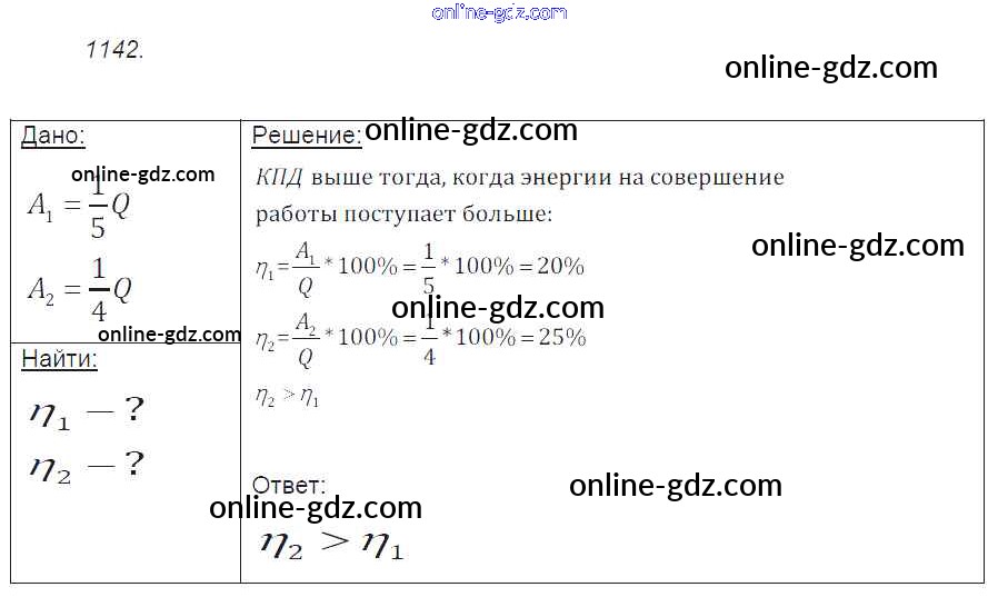 Готовые домашние задания по Физике за 7, 8, 9 класс Сборник задач Лукашик, Иванова 2011 - Задания 1142