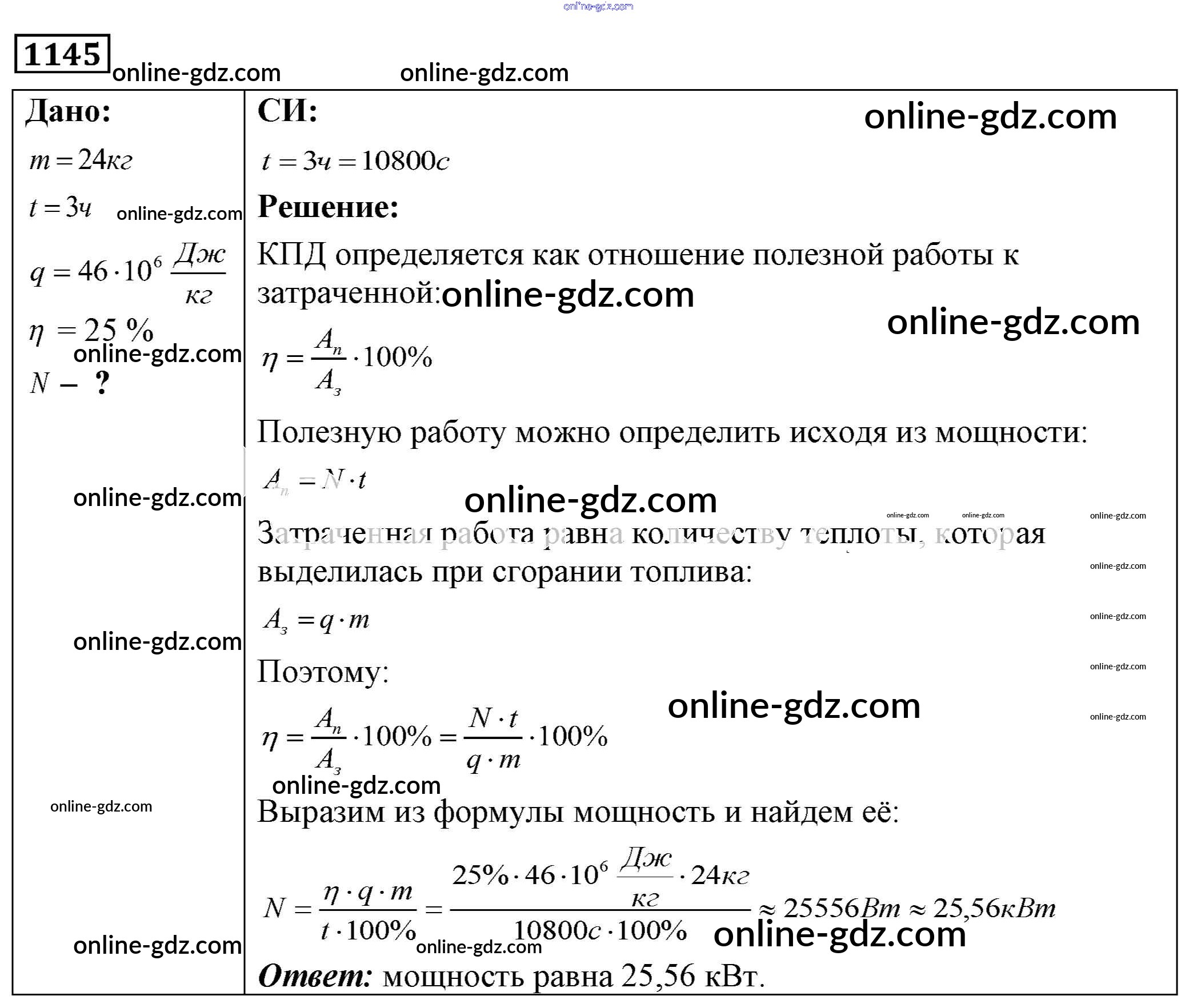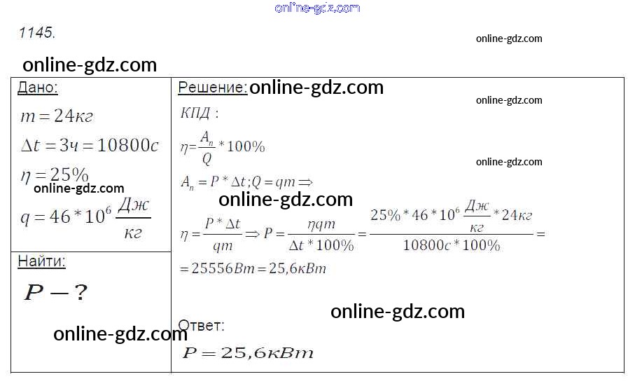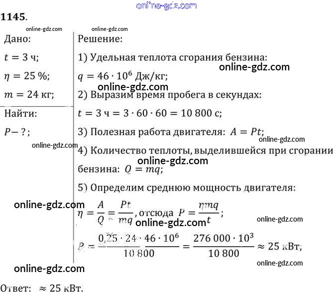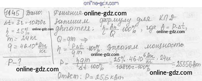Готовые домашние задания по Физике за 7, 8, 9 класс Сборник задач Лукашик, Иванова 2011 - Задания 1145