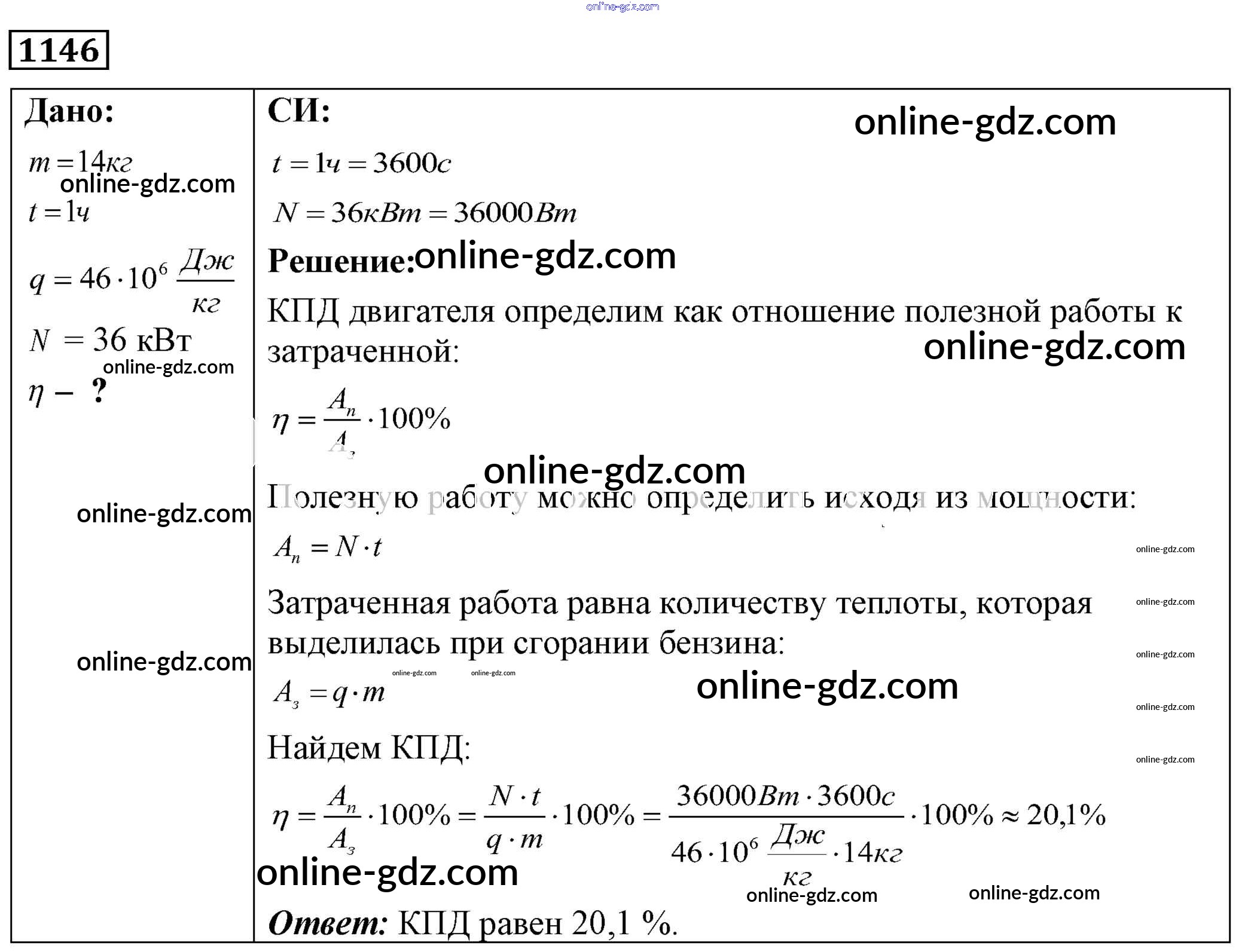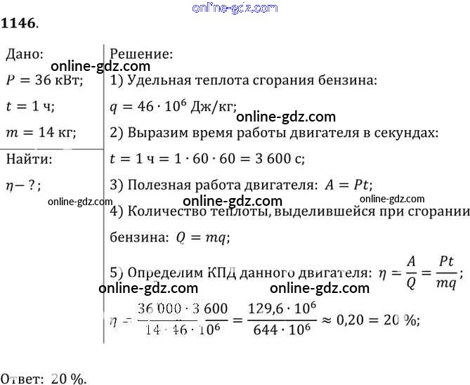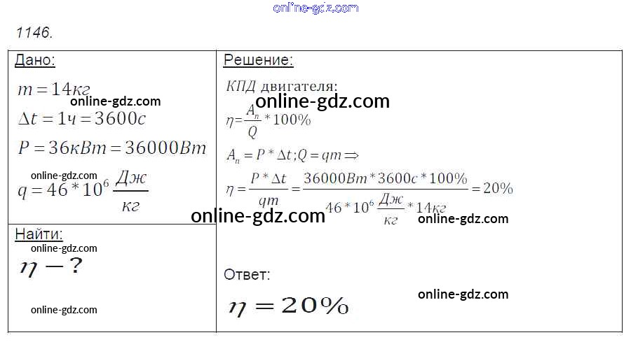 Готовые домашние задания по Физике за 7, 8, 9 класс Сборник задач Лукашик, Иванова 2011 - Задания 1146