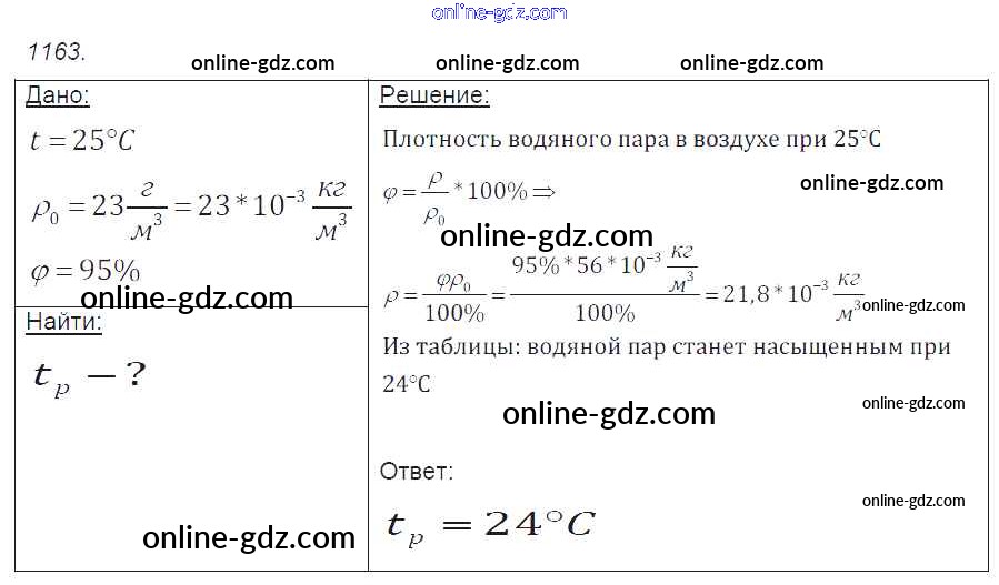 Готовые домашние задания по Физике за 7, 8, 9 класс Сборник задач Лукашик, Иванова 2011 - Задания 1163