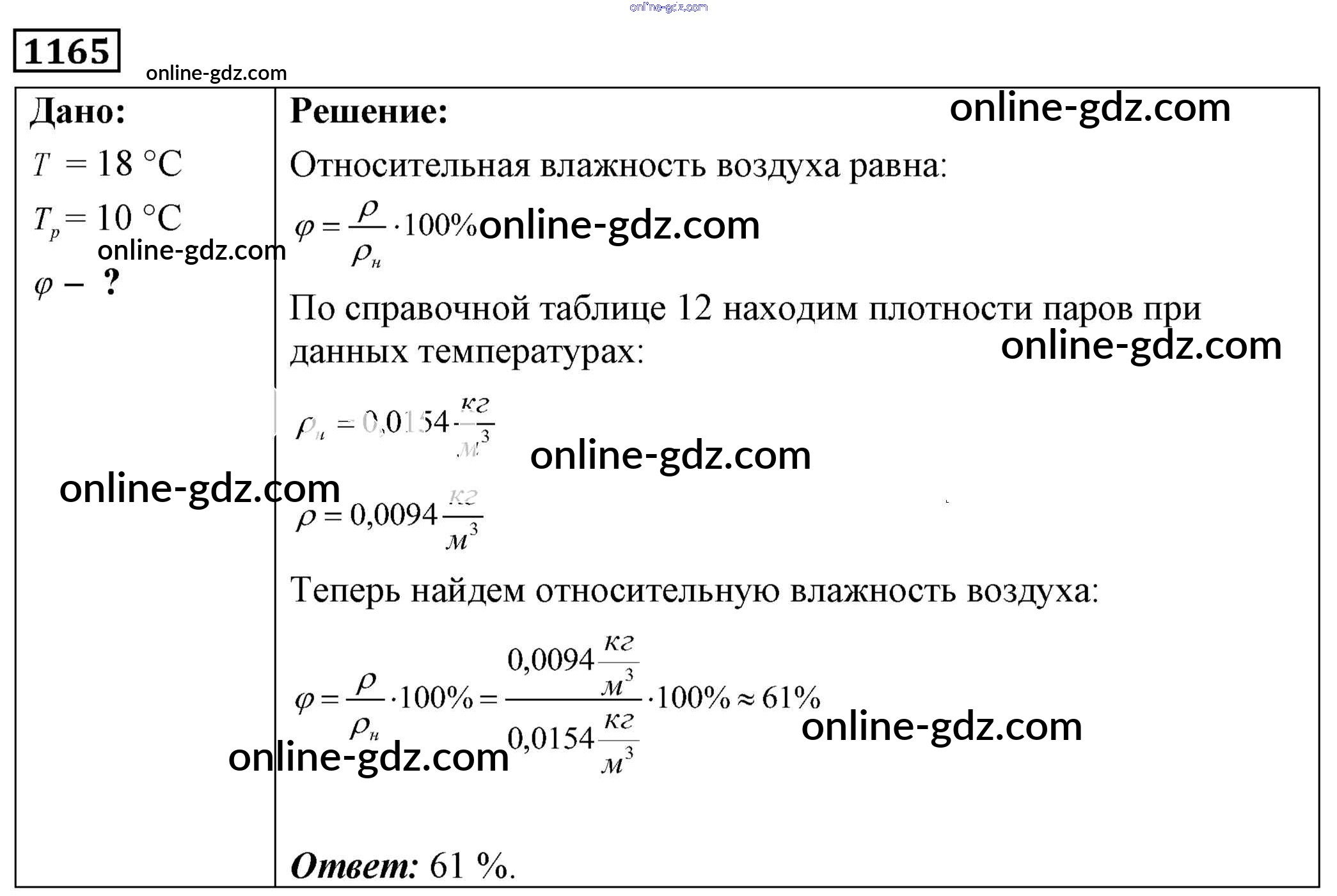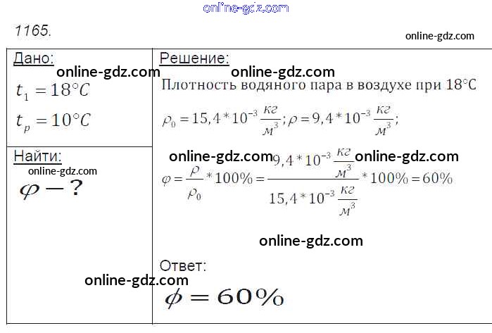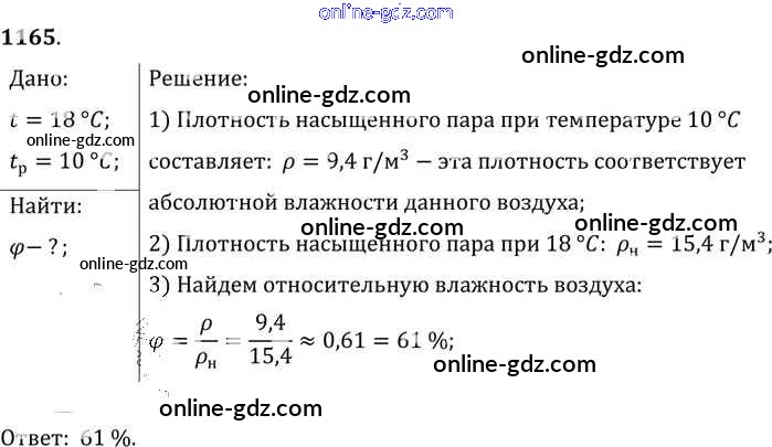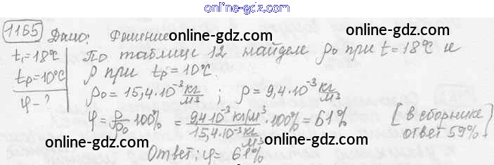 Готовые домашние задания по Физике за 7, 8, 9 класс Сборник задач Лукашик, Иванова 2011 - Задания 1165