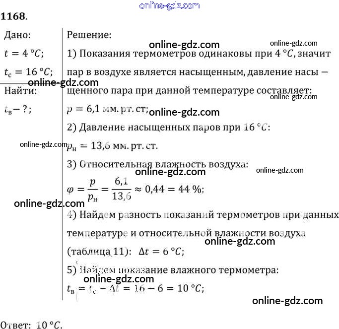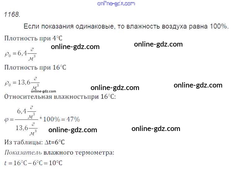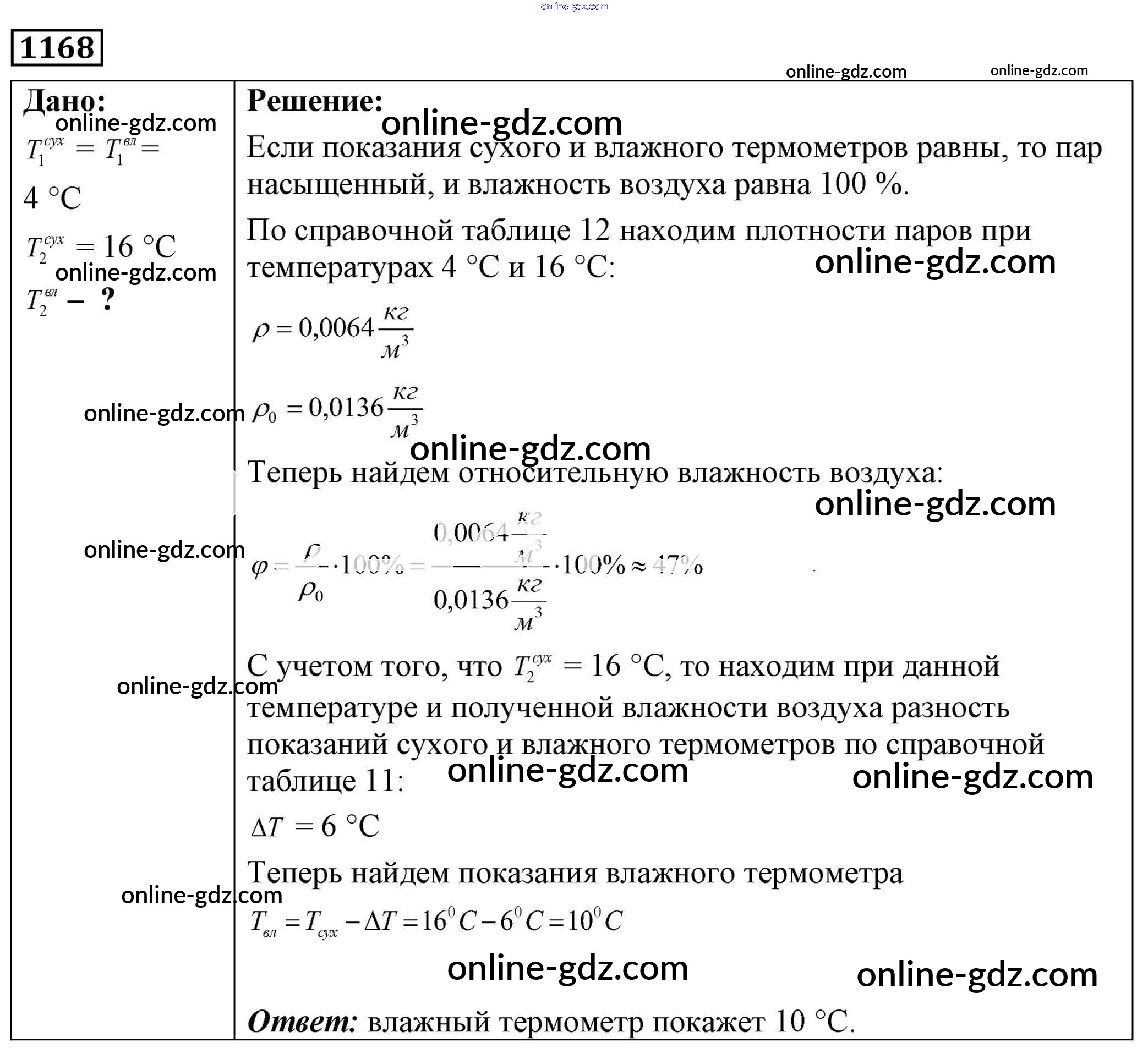 Готовые домашние задания по Физике за 7, 8, 9 класс Сборник задач Лукашик, Иванова 2011 - Задания 1168