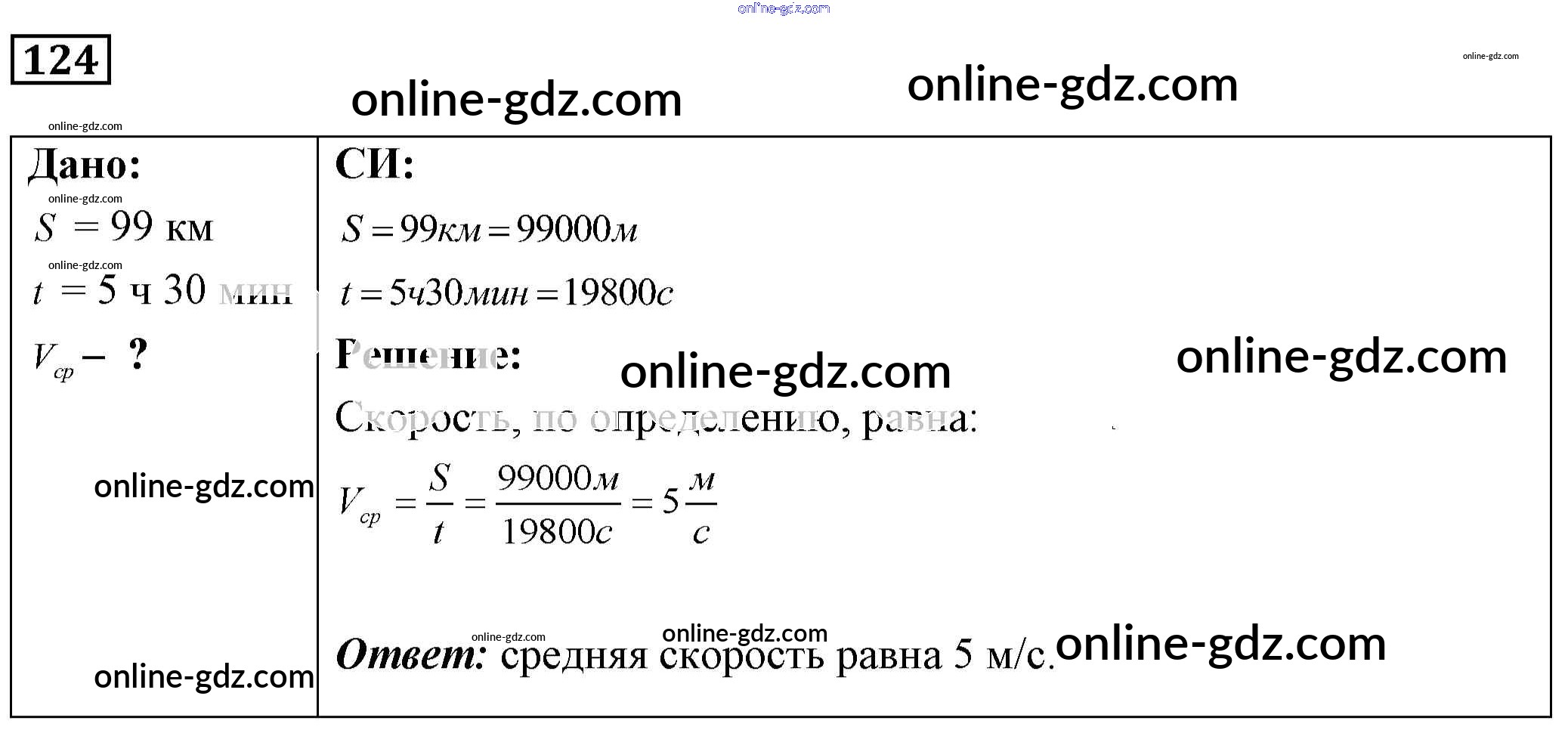 Готовые домашние задания по Физике за 7, 8, 9 класс Сборник задач Лукашик, Иванова 2011 - Задания 124