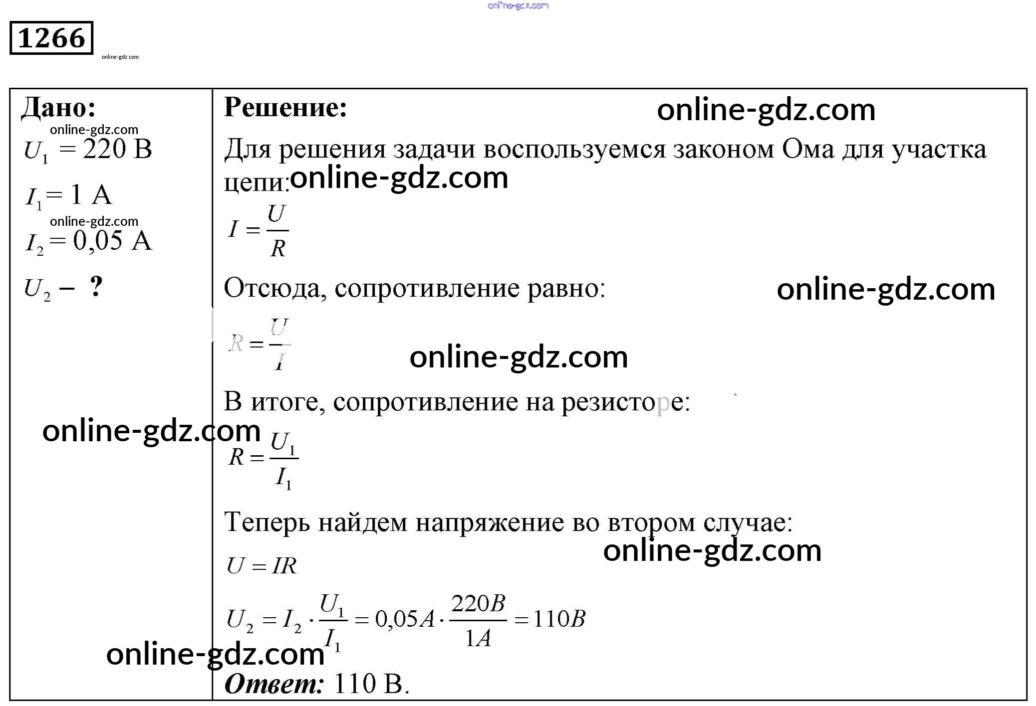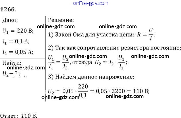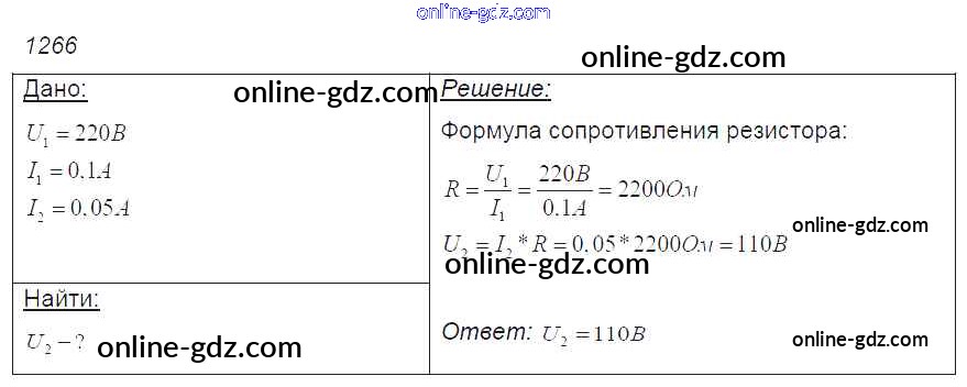Готовые домашние задания по Физике за 7, 8, 9 класс Сборник задач Лукашик, Иванова 2011 - Задания 1266