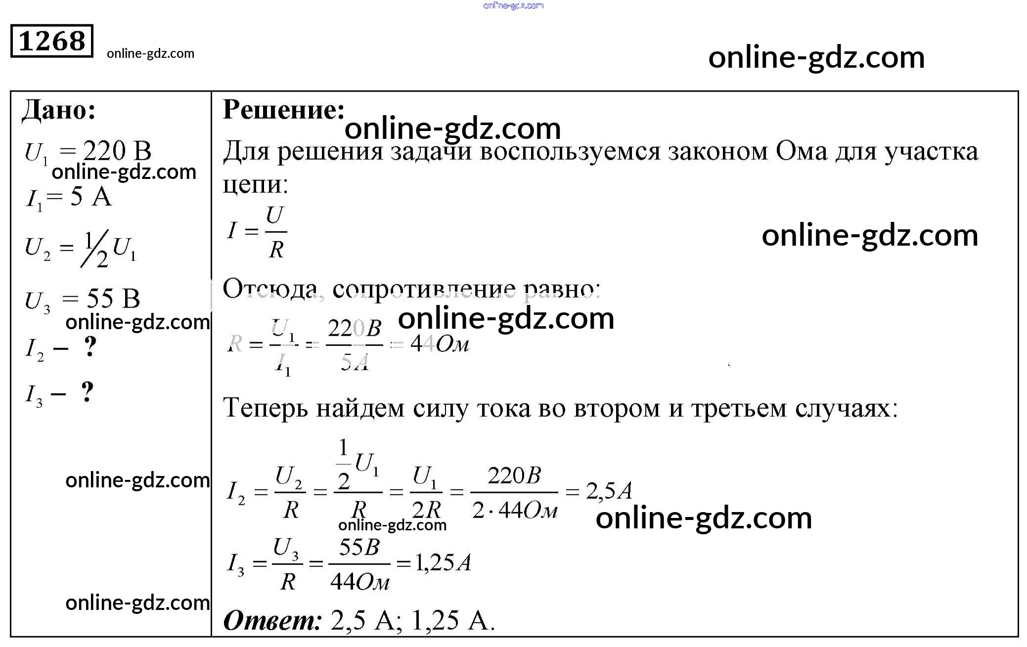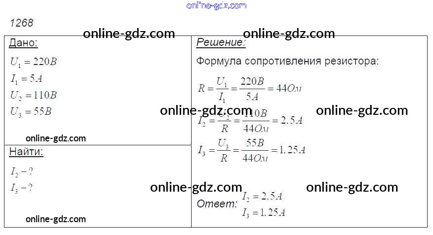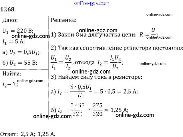 Готовые домашние задания по Физике за 7, 8, 9 класс Сборник задач Лукашик, Иванова 2011 - Задания 1268