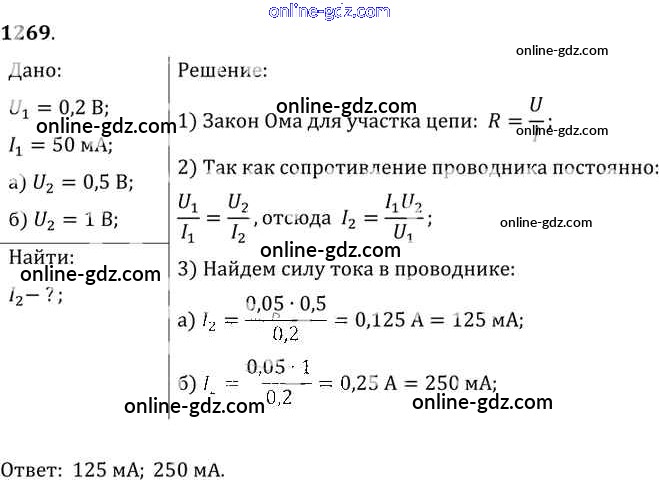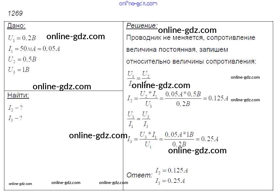 Готовые домашние задания по Физике за 7, 8, 9 класс Сборник задач Лукашик, Иванова 2011 - Задания 1269