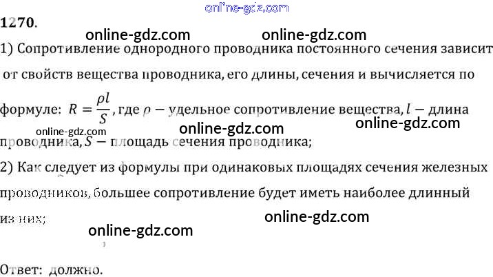Готовые домашние задания по Физике за 7, 8, 9 класс Сборник задач Лукашик, Иванова 2011 - Задания 1270