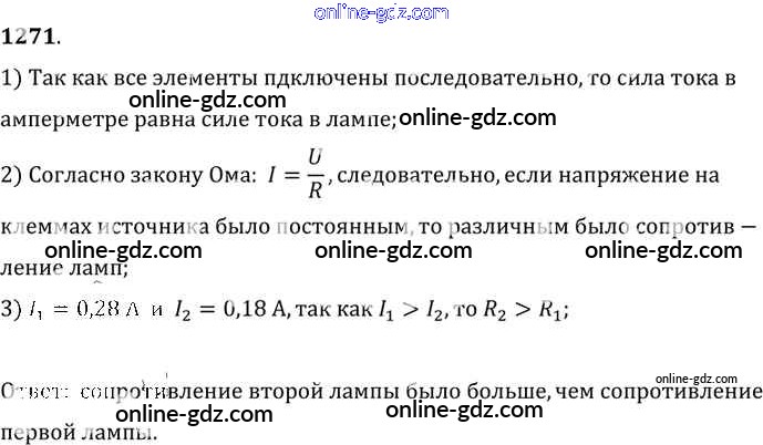Готовые домашние задания по Физике за 7, 8, 9 класс Сборник задач Лукашик, Иванова 2011 - Задания 1271