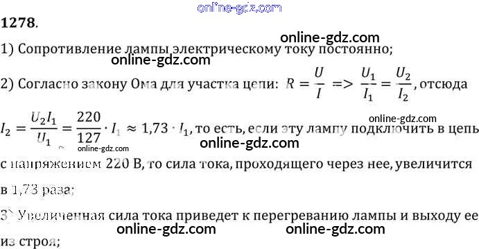 Готовые домашние задания по Физике за 7, 8, 9 класс Сборник задач Лукашик, Иванова 2011 - Задания 1278