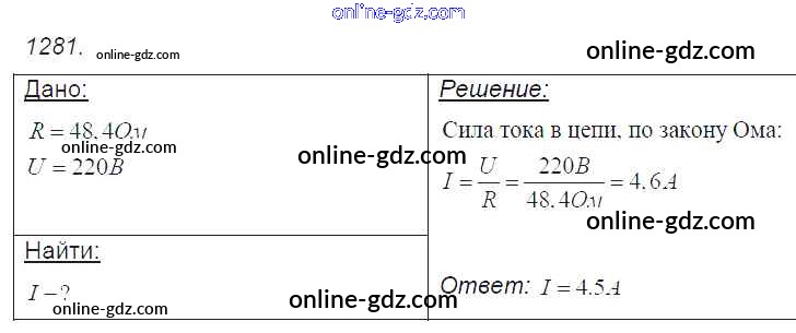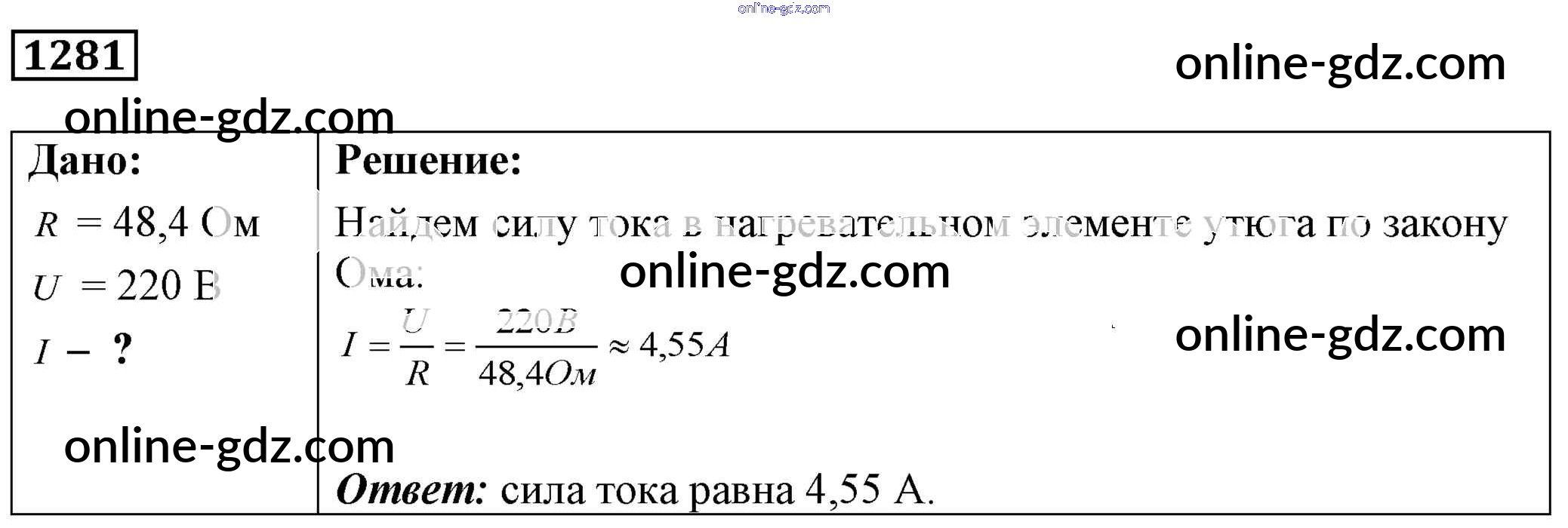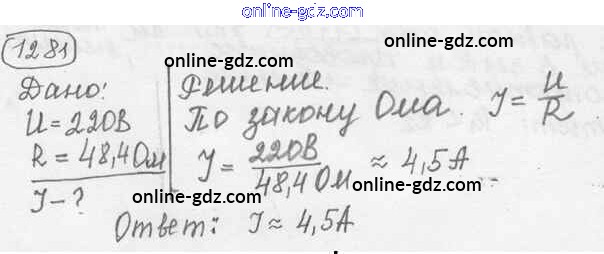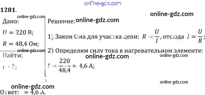 Готовые домашние задания по Физике за 7, 8, 9 класс Сборник задач Лукашик, Иванова 2011 - Задания 1281