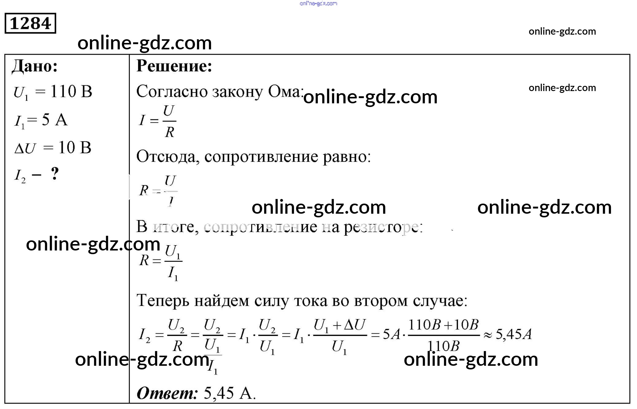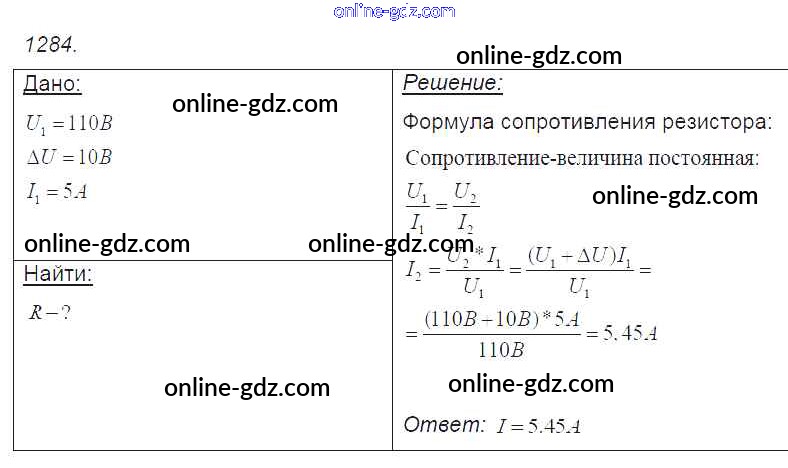 Готовые домашние задания по Физике за 7, 8, 9 класс Сборник задач Лукашик, Иванова 2011 - Задания 1284