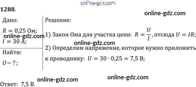 Готовые домашние задания по Физике за 7, 8, 9 класс Сборник задач Лукашик, Иванова 2011 - Задания 1288