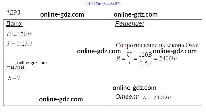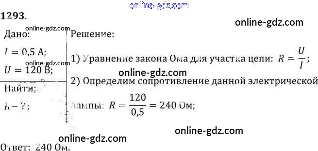 Готовые домашние задания по Физике за 7, 8, 9 класс Сборник задач Лукашик, Иванова 2011 - Задания 1293