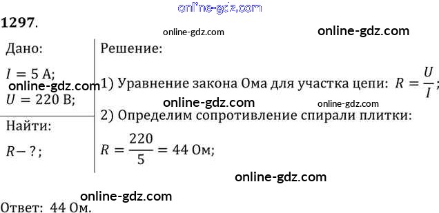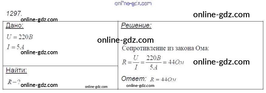 Готовые домашние задания по Физике за 7, 8, 9 класс Сборник задач Лукашик, Иванова 2011 - Задания 1297