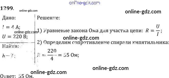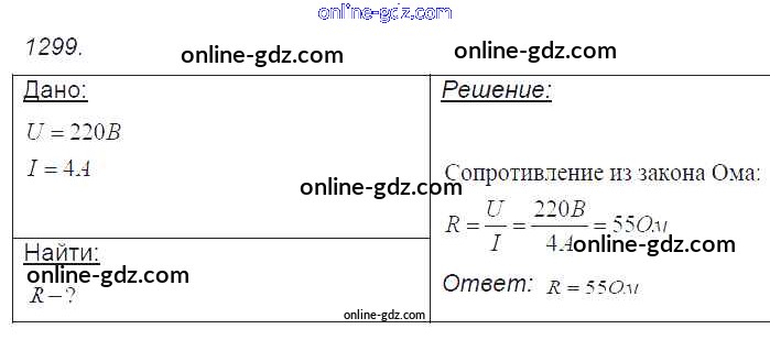 Готовые домашние задания по Физике за 7, 8, 9 класс Сборник задач Лукашик, Иванова 2011 - Задания 1299