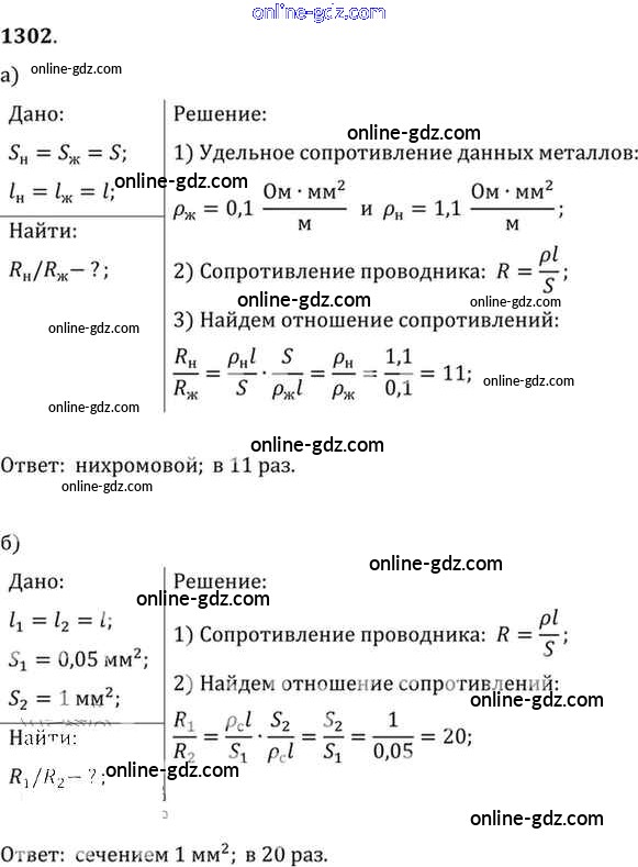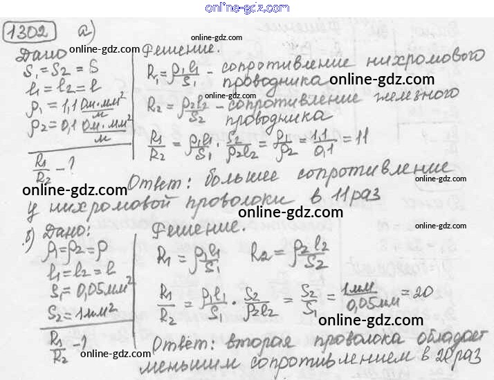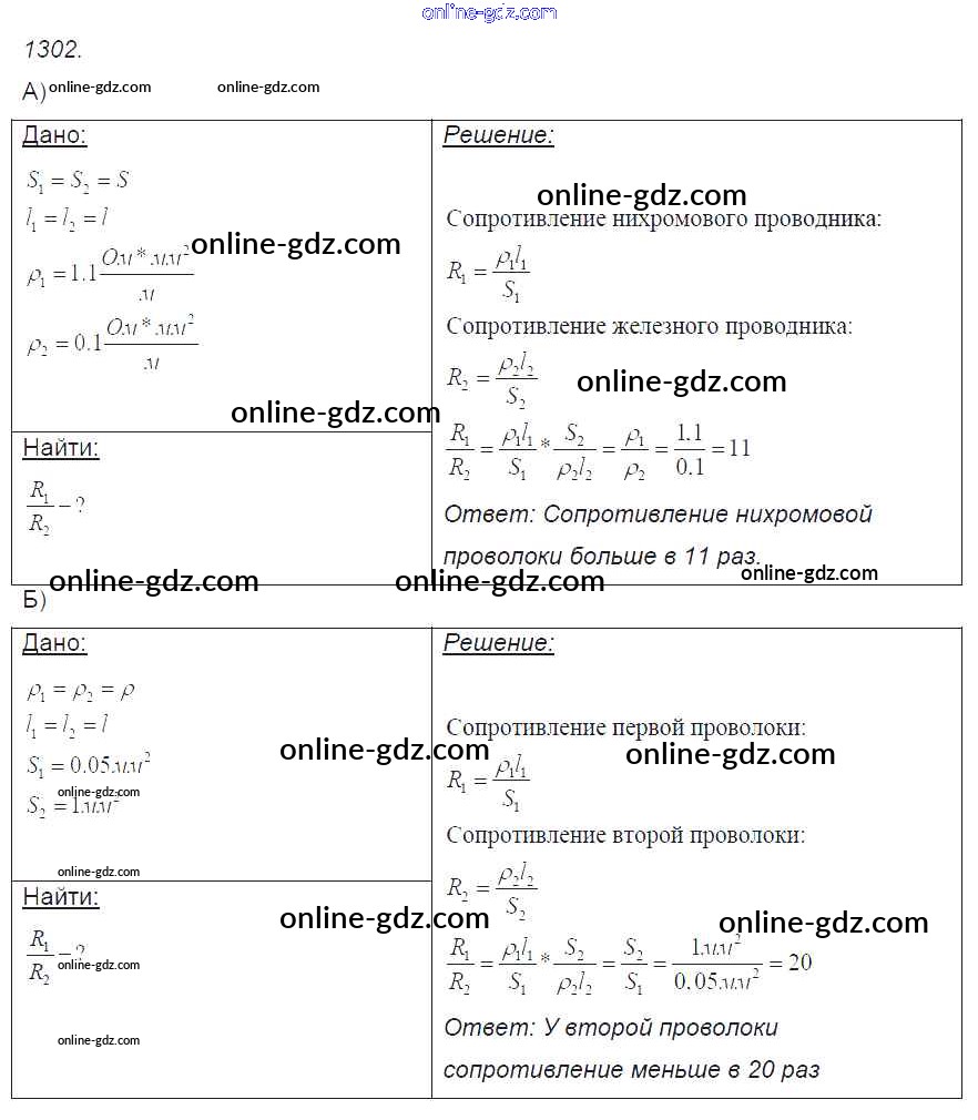 Готовые домашние задания по Физике за 7, 8, 9 класс Сборник задач Лукашик, Иванова 2011 - Задания 1302