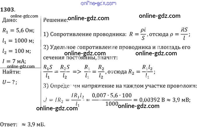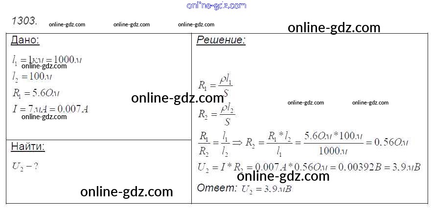Готовые домашние задания по Физике за 7, 8, 9 класс Сборник задач Лукашик, Иванова 2011 - Задания 1303