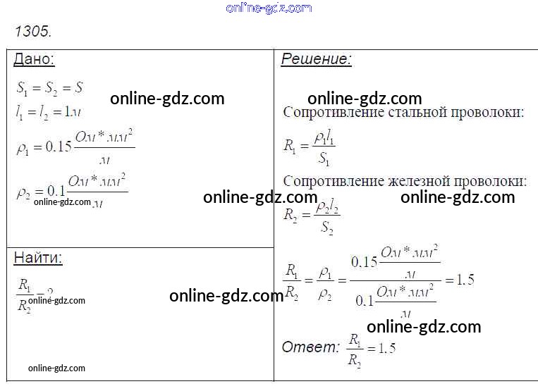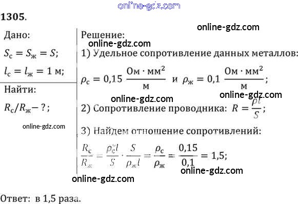 Готовые домашние задания по Физике за 7, 8, 9 класс Сборник задач Лукашик, Иванова 2011 - Задания 1305