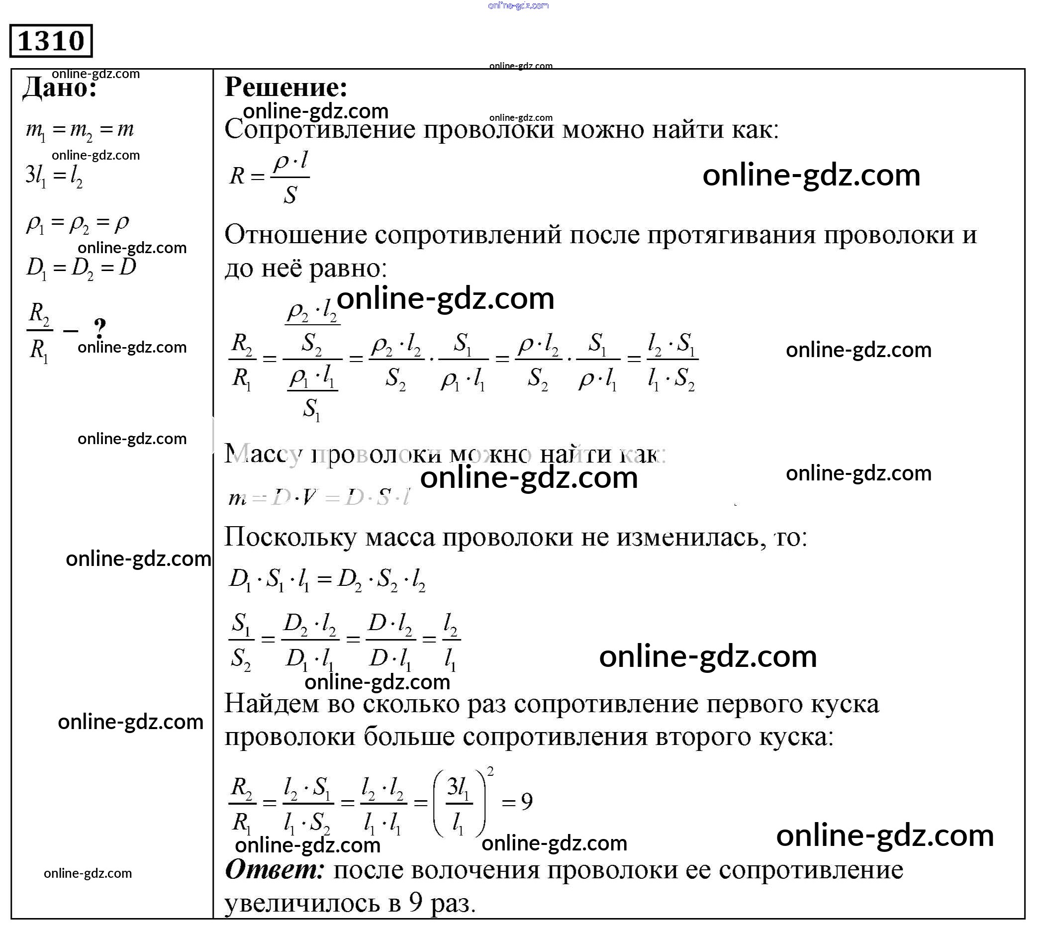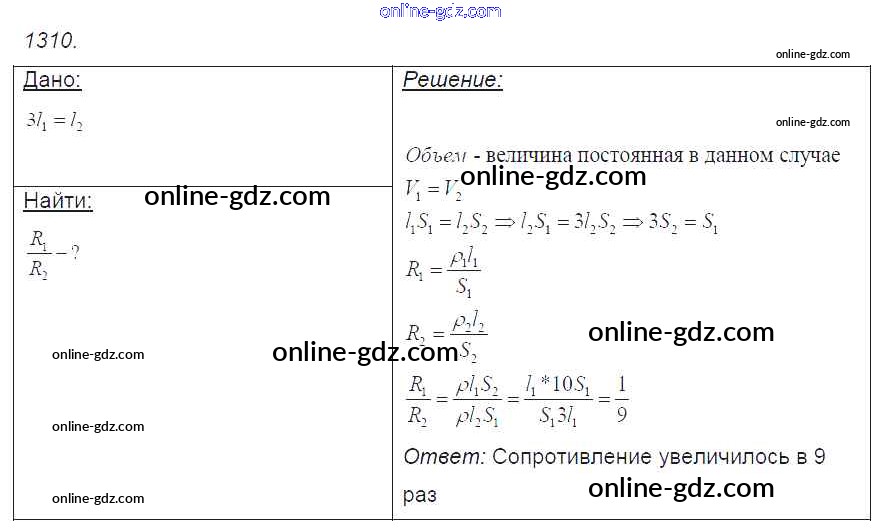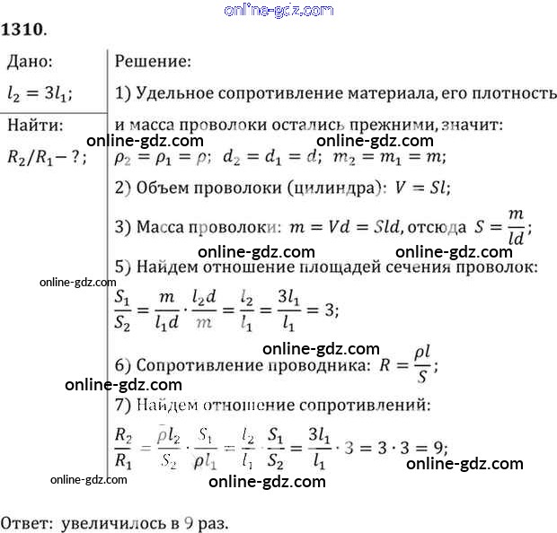 Готовые домашние задания по Физике за 7, 8, 9 класс Сборник задач Лукашик, Иванова 2011 - Задания 1310