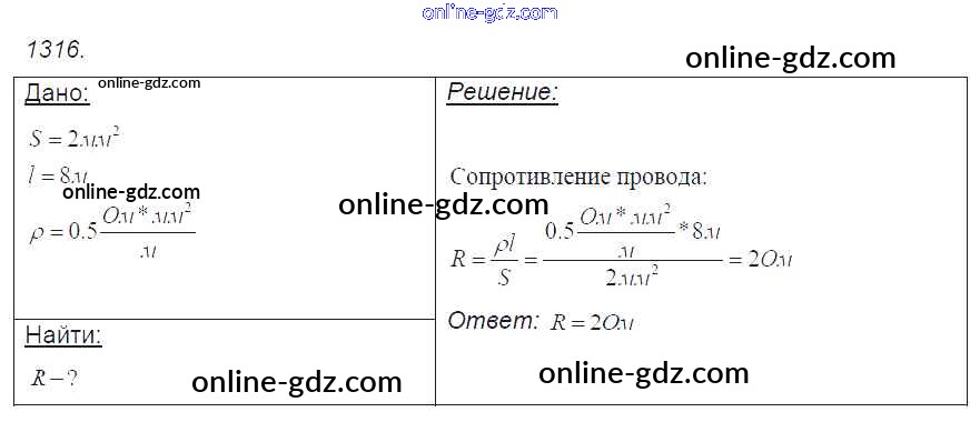 Готовые домашние задания по Физике за 7, 8, 9 класс Сборник задач Лукашик, Иванова 2011 - Задания 1316