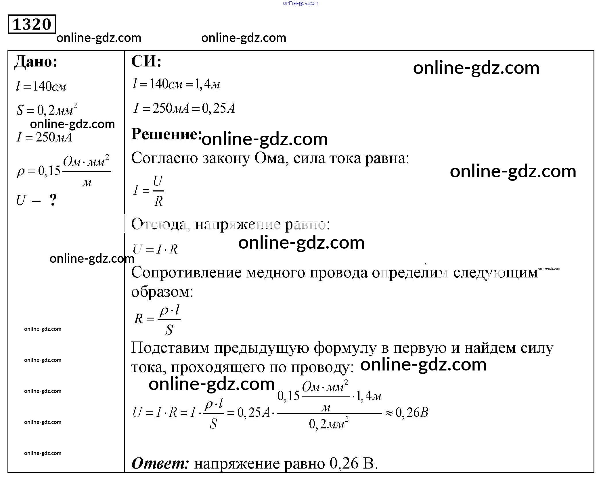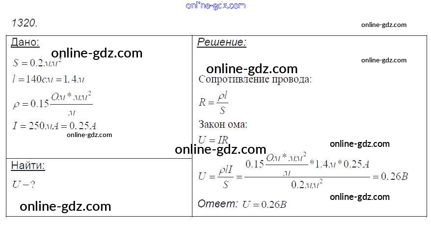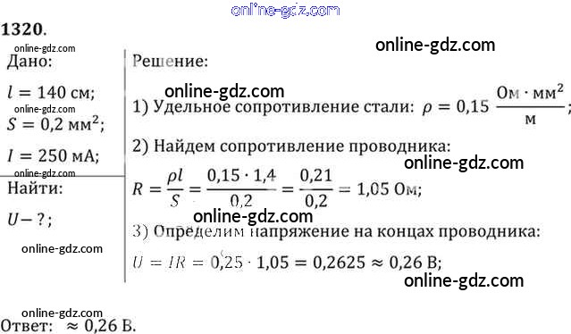 Готовые домашние задания по Физике за 7, 8, 9 класс Сборник задач Лукашик, Иванова 2011 - Задания 1320