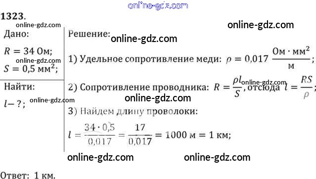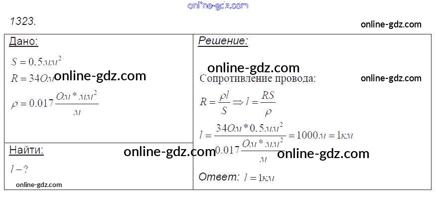 Готовые домашние задания по Физике за 7, 8, 9 класс Сборник задач Лукашик, Иванова 2011 - Задания 1323