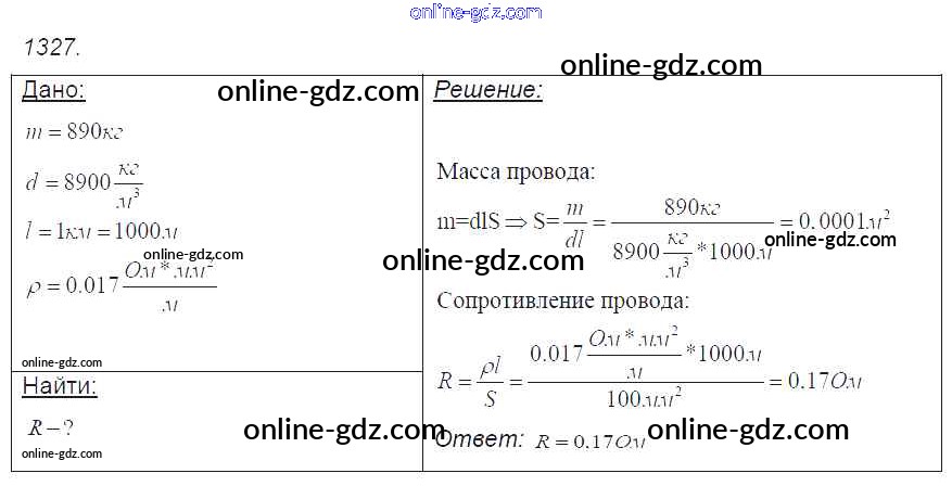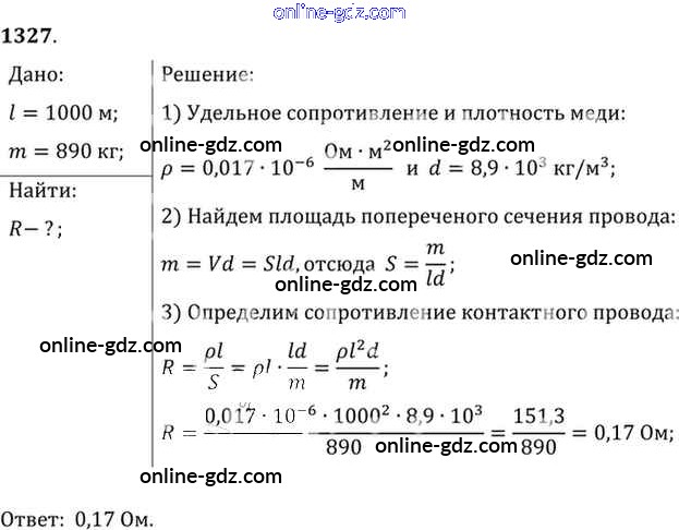Готовые домашние задания по Физике за 7, 8, 9 класс Сборник задач Лукашик, Иванова 2011 - Задания 1327
