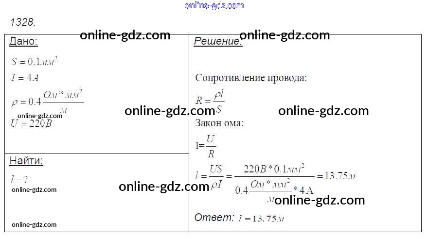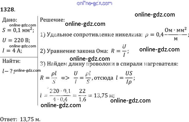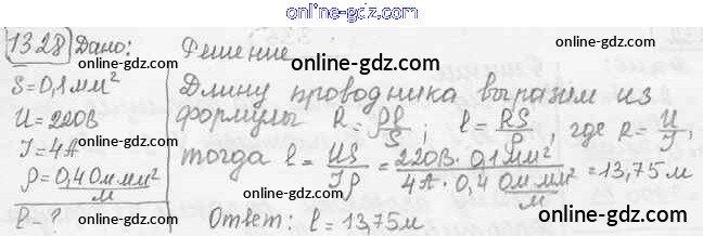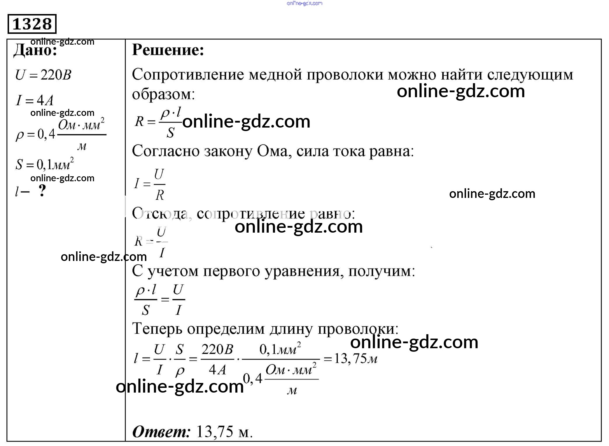 Готовые домашние задания по Физике за 7, 8, 9 класс Сборник задач Лукашик, Иванова 2011 - Задания 1328