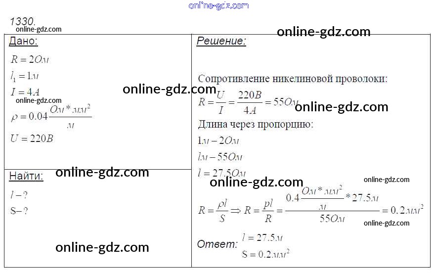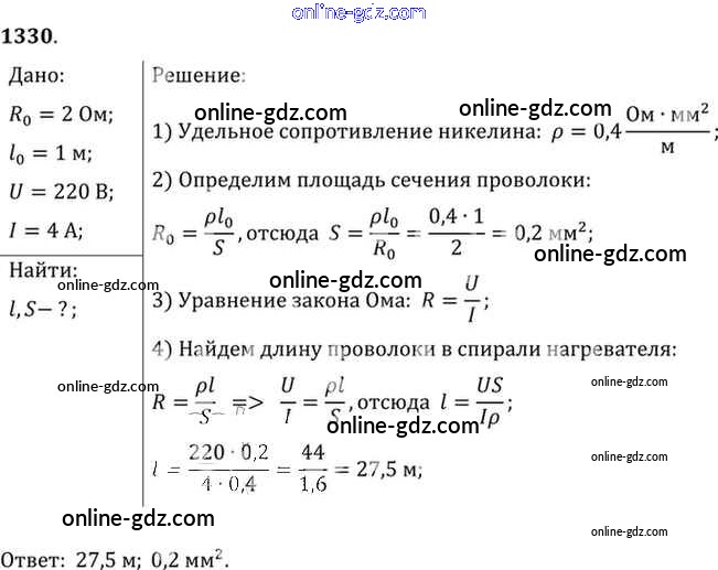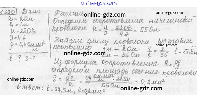 Готовые домашние задания по Физике за 7, 8, 9 класс Сборник задач Лукашик, Иванова 2011 - Задания 1330