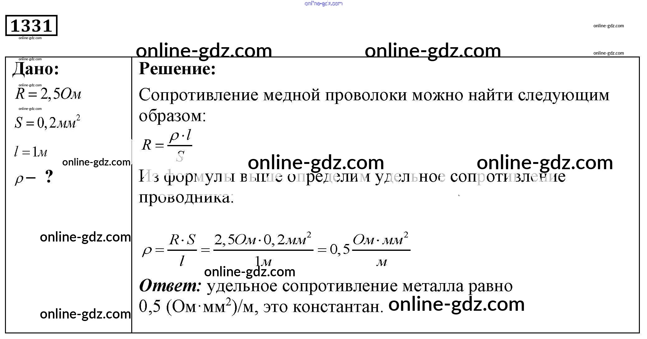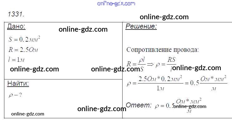 Готовые домашние задания по Физике за 7, 8, 9 класс Сборник задач Лукашик, Иванова 2011 - Задания 1331