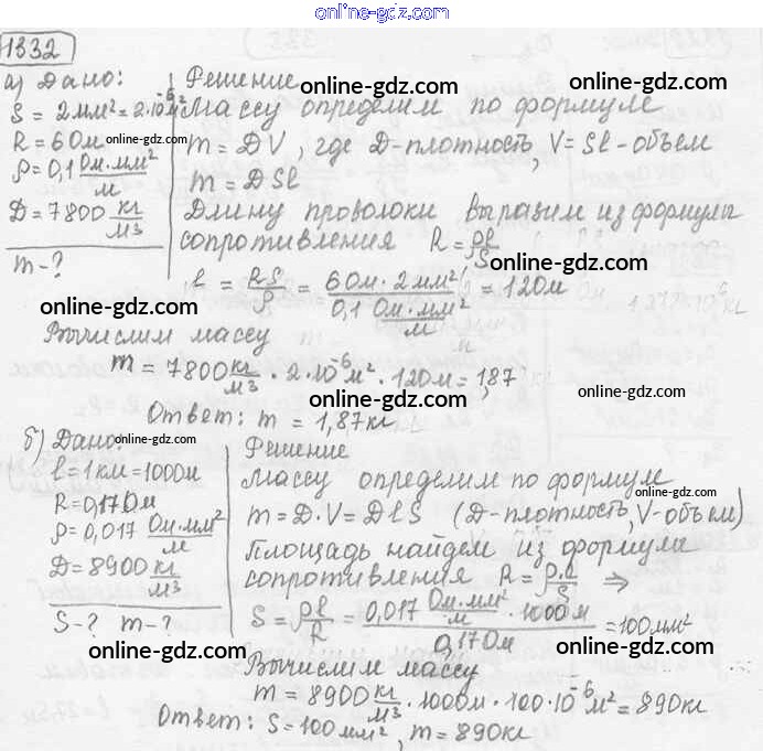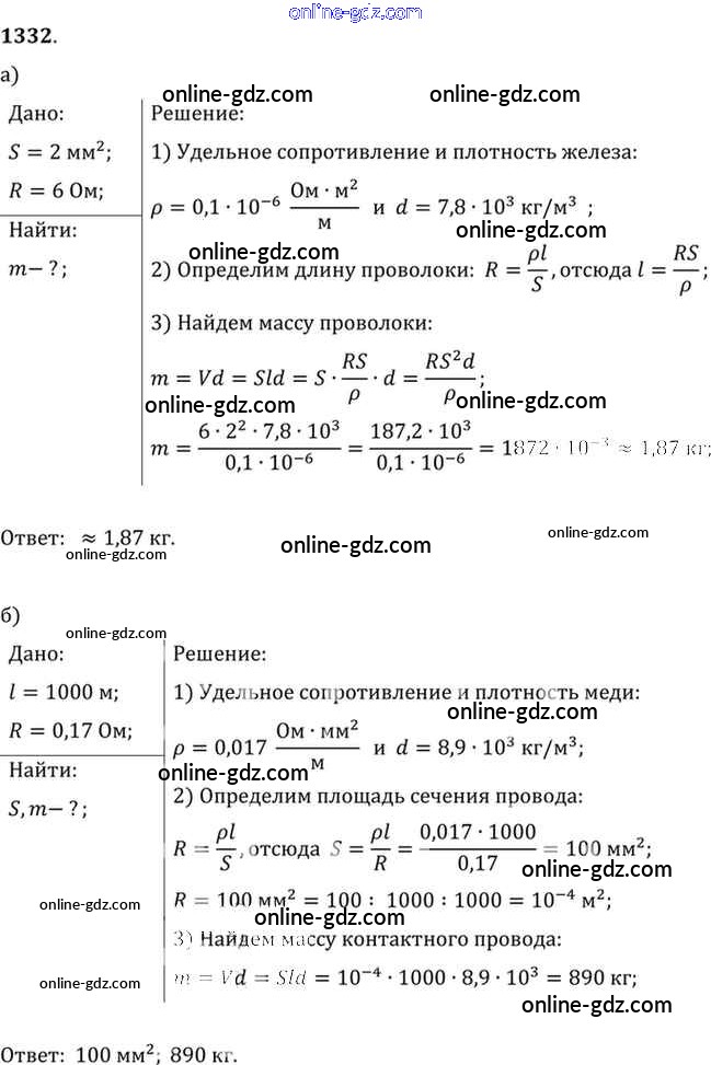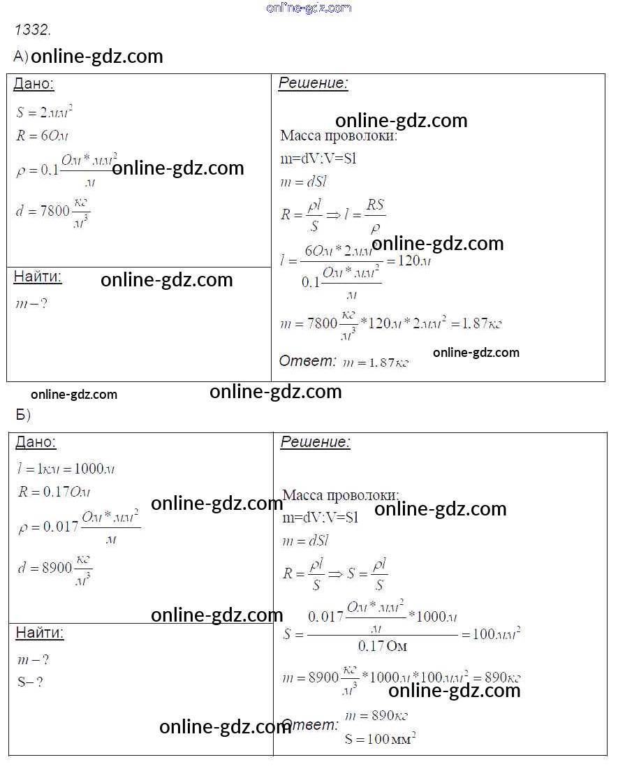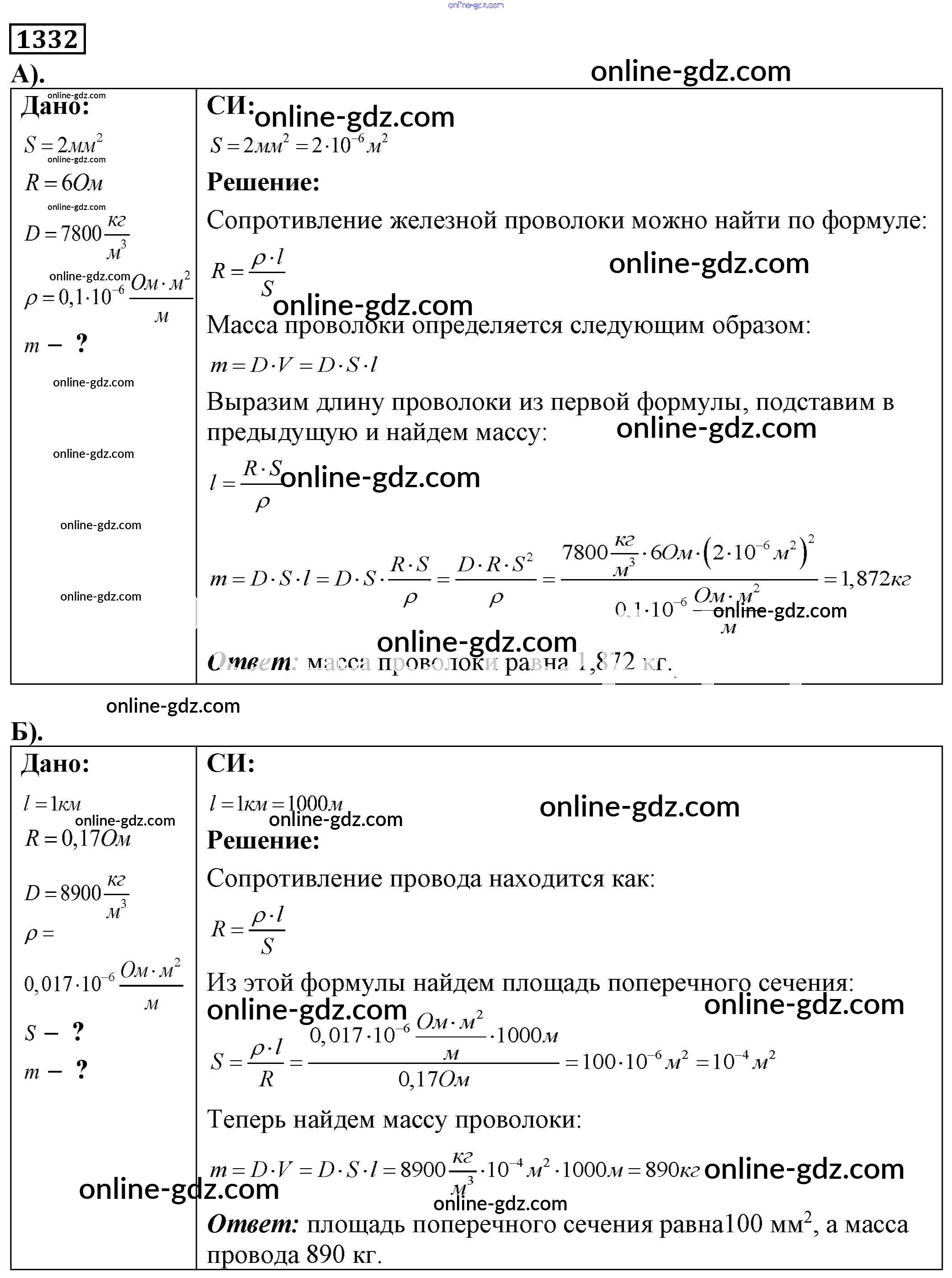 Готовые домашние задания по Физике за 7, 8, 9 класс Сборник задач Лукашик, Иванова 2011 - Задания 1332