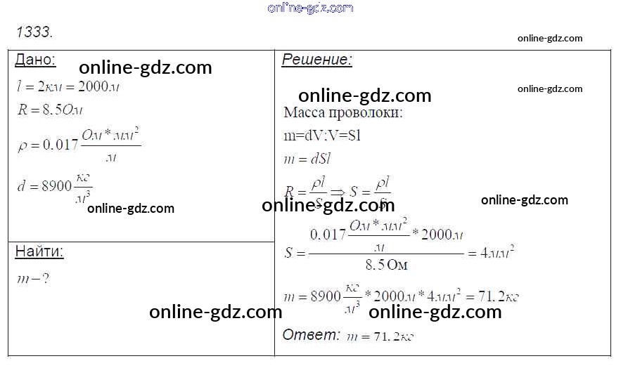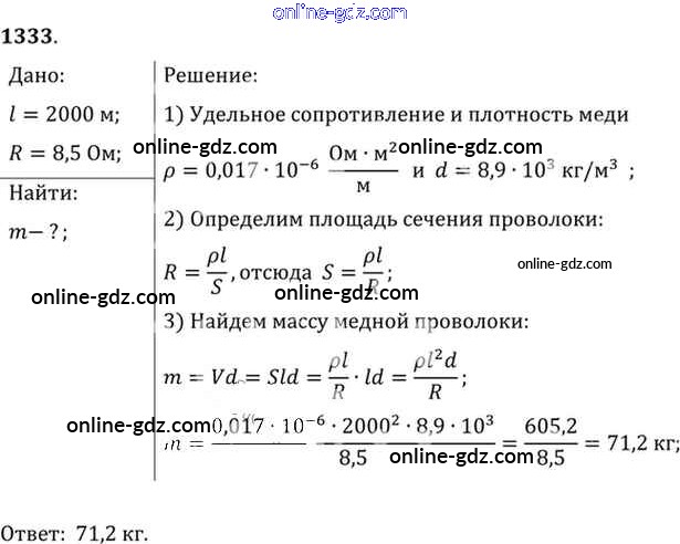 Готовые домашние задания по Физике за 7, 8, 9 класс Сборник задач Лукашик, Иванова 2011 - Задания 1333