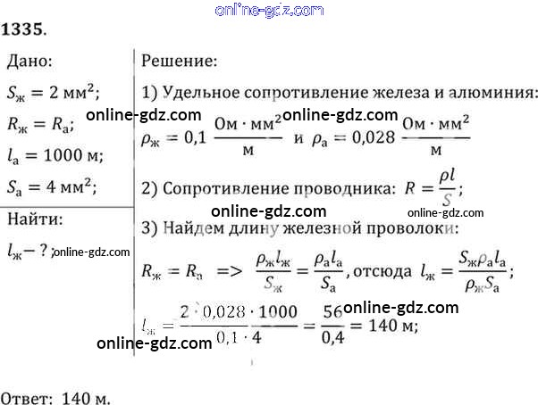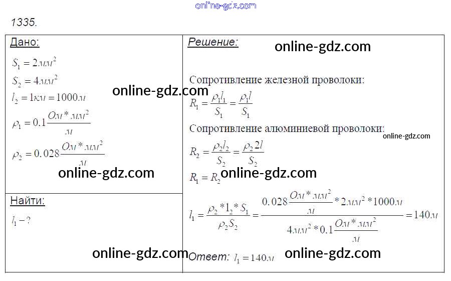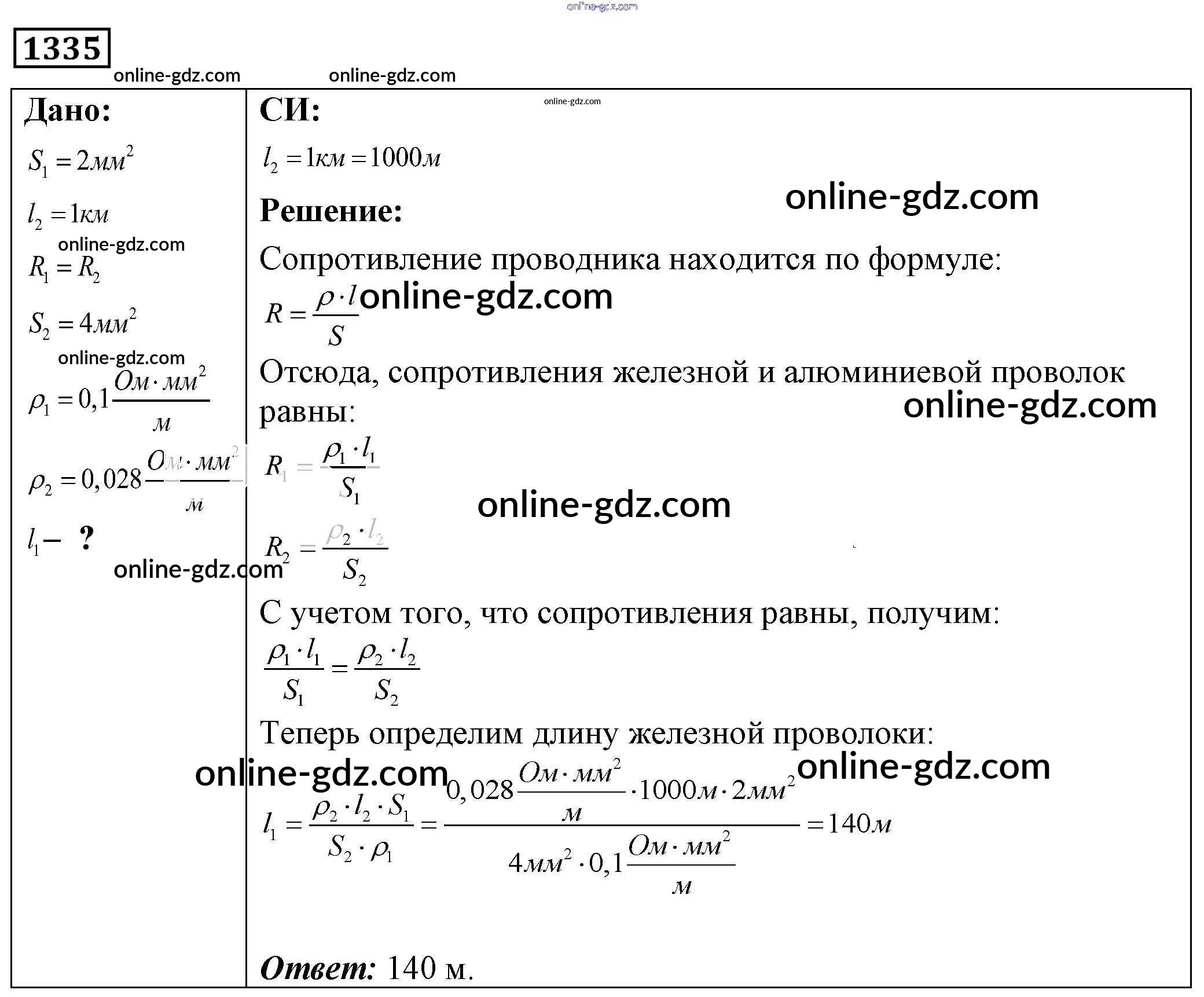 Готовые домашние задания по Физике за 7, 8, 9 класс Сборник задач Лукашик, Иванова 2011 - Задания 1335